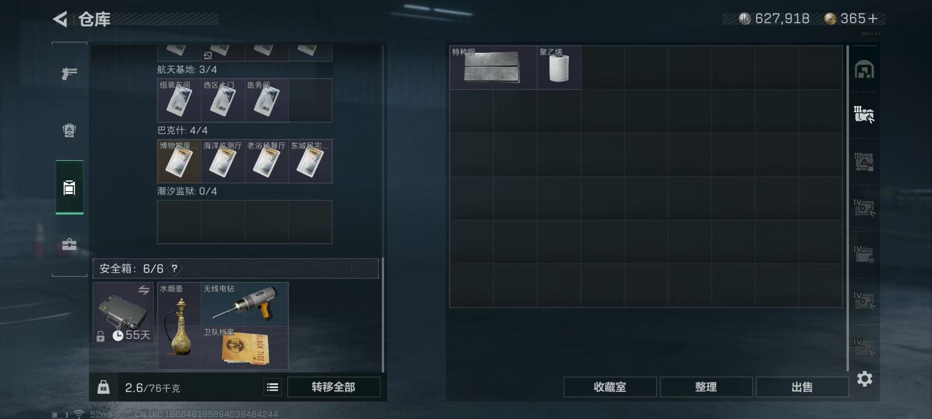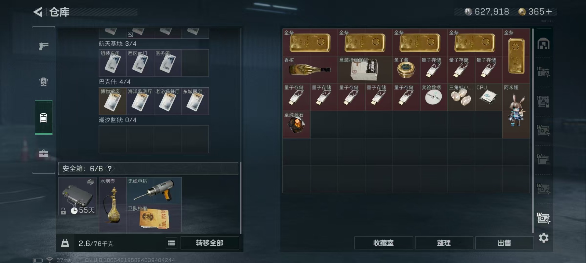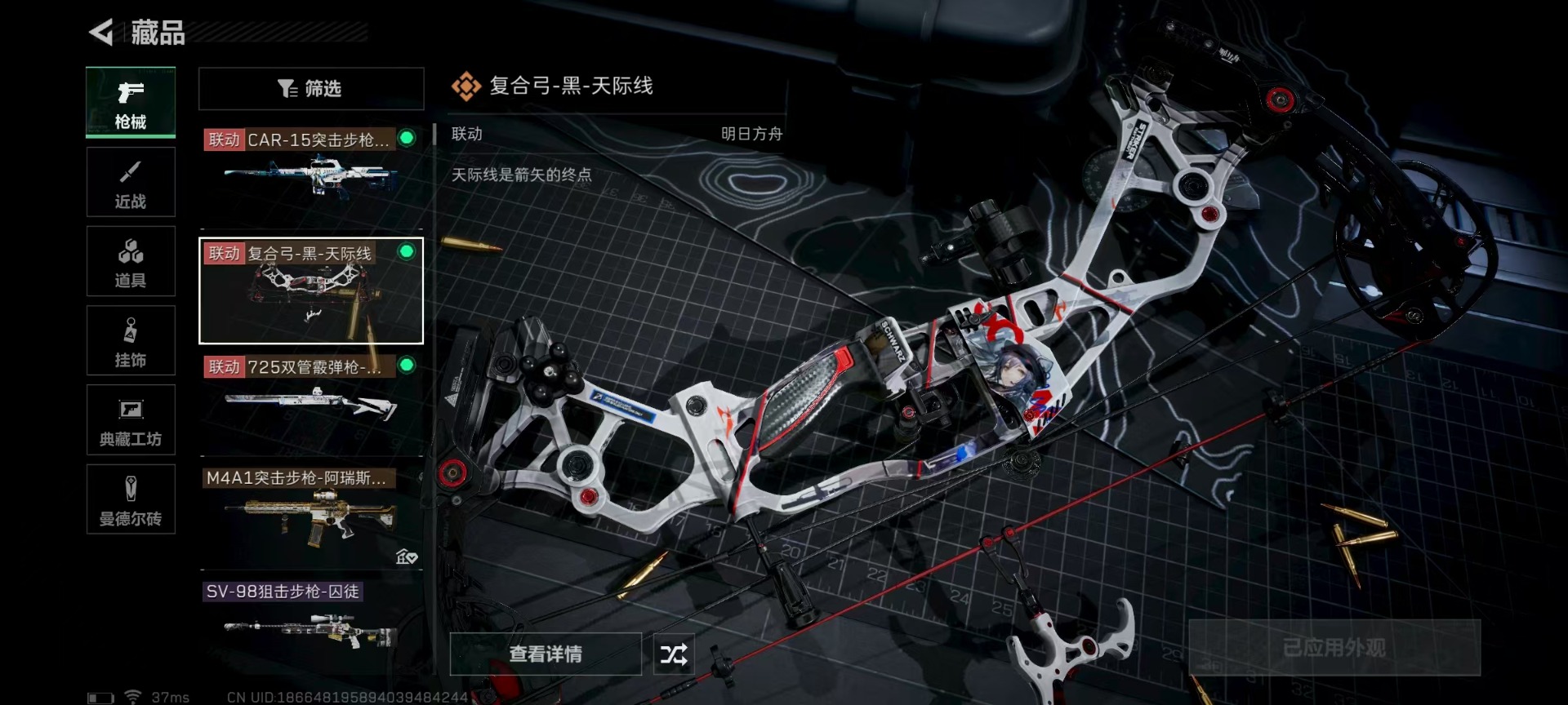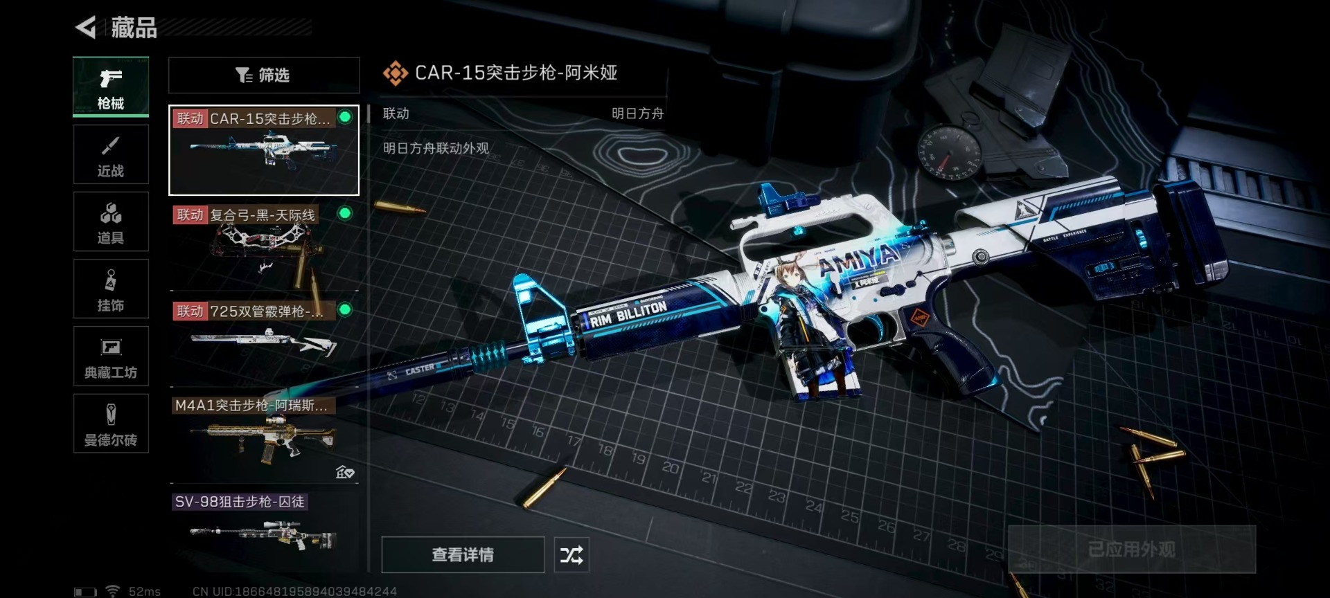 [11514901]可二次 可修改实名 实名:可修改 高级安全箱(9.17到期) 总资产:136.4 哈夫币:627.918 传说武器皮肤:复合弓-黑-天际线,CAR-15突击步枪-阿米娅,725双管霰弹枪-送葬人-无题密令,M4A1突击步枪-阿瑞斯之怒 史诗武器皮肤:SKS射手步枪-ACE,M700狙击步枪-蝮蛇,PKM通用机枪-蝮蛇,PKM通用机枪-荒野求生,SR-3M紧凑突击步枪-荒野求生,AKM突击步枪-林中猎手,M1014霰弹枪-林中猎手,SV-98狙击步枪-林中猎手,PTR-32突击步枪-英雄,PSG-1射手步枪-无垢,M250通用机枪-囚徒,SV-98狙击步枪-囚徒