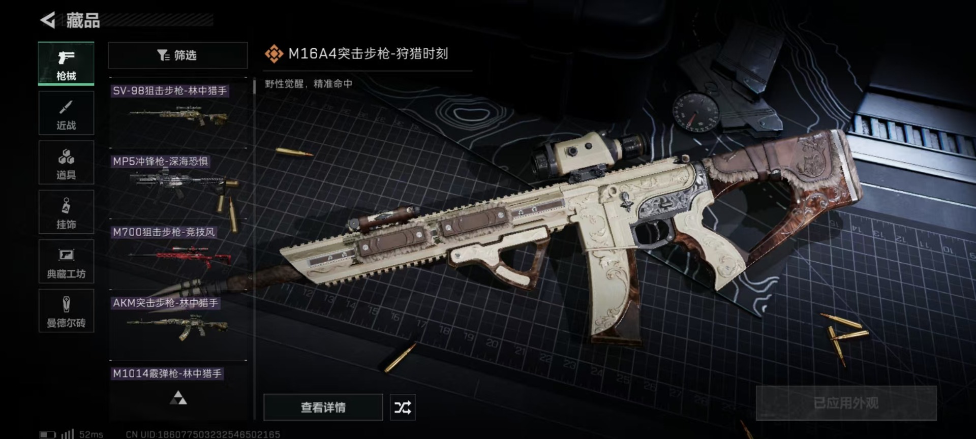 [11514983]总资产:128.2M 5传说枪械 哈夫币:40.962K 进阶安全箱(9.17到期) 可二次 可修改实名 烽火地带段位:铂金 全面战场段位:无段位 传说武器皮肤:M16A4突击步枪-狩猎时刻,复合弓-黑-天际线,Vector冲锋枪-狩猎时刻,G3战斗步枪-狩猎时刻,勇士冲锋枪-能天使-午夜邮差 史诗武器皮肤:MP5冲锋枪-深海恐惧,AKM突击步枪-林中猎手,M1014霰弹枪-林中猎手,SV-98狙击步枪-林中猎手,M700狙击步枪-竞技风