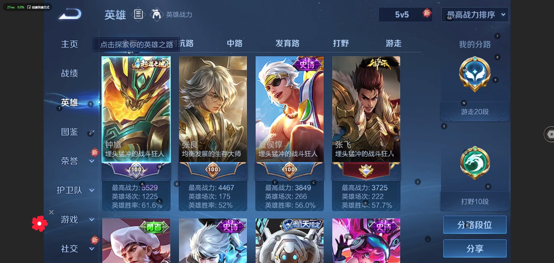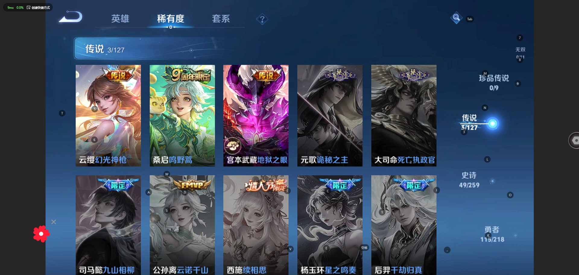 - [11293631]V6 5传说 123英雄 154皮肤 可修改实名 优质装备:久胜战神,地狱之眼,碎云 珍宝阁皮:玩趣恶龙 限定皮:愿照·九州拓(澜年限),鸣野蒿,梁祝,天狼绘梦者,李小龙,大圣娶亲 史诗皮:化蝶舞,星界战将,百相守梦-百里守约,破空之剑,特工魅影,千年之狐,冰冠公主,水果甜心,星夜王子,心灵骇客,功夫厨神,暗隐猎兽者,鬼剑武藏,天秀·启明,舞动绿茵,纤云弄巧,繁星吟游(呼啦呼啦),缤纷独角兽,乘风破浪,逐浪之夏,月团寄思,水晶猎龙者,鹰眼统帅,魅力维加斯