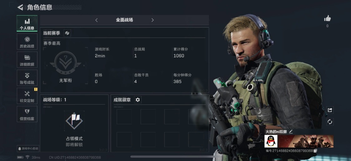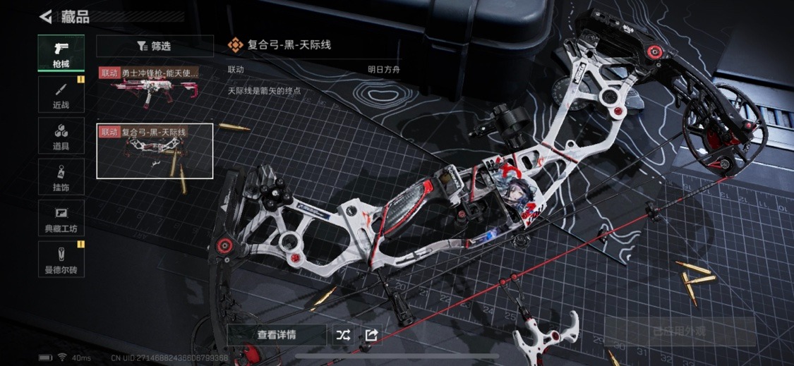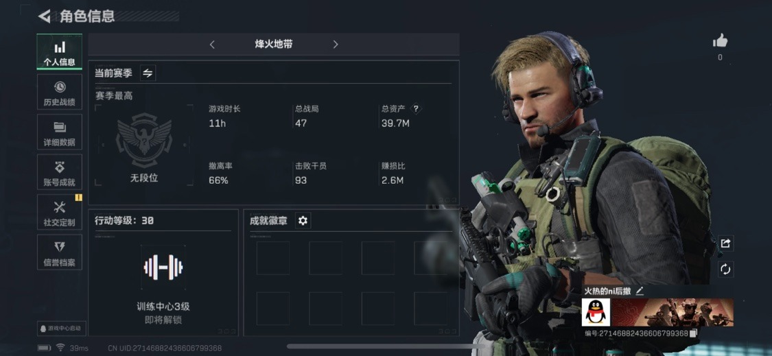 [11515273]总资产:39.7 2传说枪械 可二次 可修改实名 烽火地带段位:无段位 全面战场段位:无段位 哈夫币:20.463 传说武器皮肤:复合弓-黑-天际线,勇士冲锋枪-能天使-午夜邮差