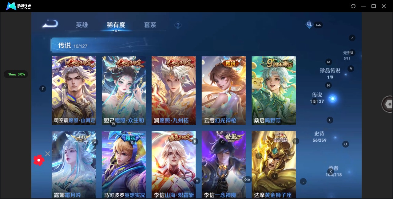 - [11498258]V7 7传说 124英雄 241皮肤 可修改实名 优质装备:云鹰飞将(小将军),炽阳神光,一念神魔,琥珀纪元马超 珍宝阁皮:优雅恋人,蔷薇恋人 限定皮:鸣野蒿,至尊宝,傲雪梅枪,前尘镜,白晶晶,时雨天司(水龙头),神威(电光马子),冰锋战神,梁祝,御风骁将(吕布年限),李小龙,朱雀志(守约年限),如梦令-后羿,默契交锋-花木兰,一生所爱,冰霜恋舞曲,寅虎·心曲(虎婆) 史诗皮:星界特工,星界战将,蒙犽顽岩魄,黄金分割率,千年之狐,百解令(蒙犽),偶像歌手,白蛇,无限星赏官,猫狗日记-孙策,时之恋人-孙尚香,乱世虎臣,节奏热浪,修罗,摇滚巨星,水果甜心,天才门将,星夜王子,心灵骇客,功夫厨神,德古拉伯爵,暗隐猎兽者,鬼剑武藏,纤云弄巧,繁星吟游(呼啦呼啦),逐浪之夏,水晶猎龙者,曙光守护者,热力回旋,箭羽风息,金属风暴,原初追逐者,圣诞恋歌,鹰眼统帅,黎明之约,赏金猎手,无心,未来纪元-赵云