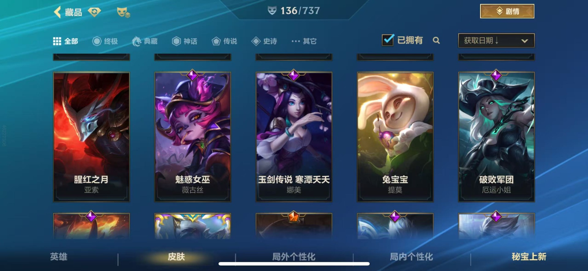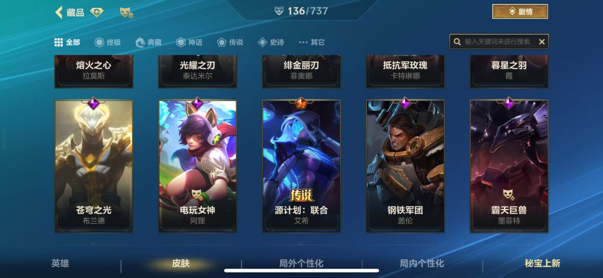 [11515613]可二次 可修改实名 1神话 11传说 60史诗 136皮肤 114英雄 铂金 皮肤:奥莉安娜-光耀之心,奥莉安娜-星之守护者,奥莉安娜-哥特女仆,奥莉安娜-暗星,阿狸-电玩女神,阿狸-焰尾妖狐,阿狸-偶像歌手,薇恩-光明哨兵,薇恩-源计划:净化,薇恩-苍穹之光,泰达米尔-关羽 云长,泰达米尔-光耀之刃,泰达米尔-恶魔之刃,烬-龙冕异士,烬-腥红之月,烬-源计划:升华,崔斯特-王牌舰长,崔斯特-未来战士,崔斯特-腥红之月,布兰德-灵魂烈焰,布兰德-苍穹之光,布兰德-丧尸,劫-天煞,劫-冲击之刃,劫-源计划:阴,崔丝塔娜-灵魂莲华,崔丝塔娜-娜就去看看,崔丝塔娜-游击队员,提莫-小蜜蜂,提莫-熊猫,提莫-兔宝宝,蔚-双城之战,蔚-女警官,蔚-源计划:裁决,厄运小姐-破败军团,厄运小姐-福牛守护者,厄运小姐-西部牛仔,艾希-王牌司令,艾希-极地女神,艾希-源计划:联合,阿利斯塔-福牛守护者,阿利斯塔-黑暗骑士,阿利斯塔-哞利斯塔,阿卡丽-银色之牙,阿卡丽-源计划:暗影,墨菲特-黑曜石守护者,墨菲特-霸天巨兽,盖伦-海上霸主,盖伦-钢铁军团