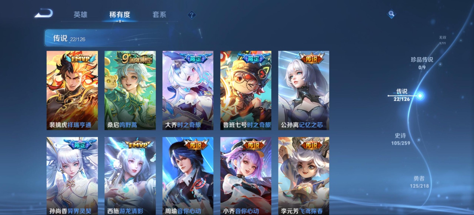- [12162532]V8 2典藏 3无双 3珍品传说 24传说 124英雄 319皮肤 可修改实名 优质装备:九霄神辉(木兰典藏),小乔时之魔女(小乔无双),离恨烟(公孙离无双),器灵·螭龙剑,最初的交响(伽罗典藏),怪盗基德,大耳狗之梦,黄金狮子座,云鹰飞将(小将军),绛天战甲(鸡嘴战神),久胜战神,炽阳神光,一念神魔,零号·赤焰,地狱之眼,李逍遥,无双飞将,山海·炽霜斩(李信年限),浮生妄,电玩·雷克斯,妄想实况,夜礼服假面,澜逐花归海,千山共赴,涂山容容 珍品传说:时之奇旅-孙策 传说皮:幻光神枪 珍宝阁皮:妄想食味,蔷薇恋人 限定皮:愿照·九州拓(澜年限),陌上桑,鸣野蒿,绯月行,时雨天司(水龙头),遇见飞天,诗剑行,御风骁将(吕布年限),岱宗(典韦年限),李小龙,默契交锋-花木兰 史诗皮:鸭鸭历险记-刘禅,苍鳞隐世,器灵·浮梦炉,化蝶舞,龙之律动,琥珀纪元伽罗,雪豹·霜爪,星界战将,百相守梦-周瑜,茶境仙,百相守梦-黄忠,撼地雄心,破空之剑,战舞者,涂山红红,东方月初,怒海争锋,海诺心动手记,幻珠鲛人,百相守梦-百里守约,守夜人,织梦人,紫霞仙子,特工魅影,永昼,冰冠公主,白蛇,江河有灵,百解令(蒙犽),高渐离燃音魔法,魅语,晚萤,猫狗日记-孙策,节奏热浪,修罗,摇滚巨星,水果甜心,绅士熊喵,星夜王子,心灵骇客,德古拉伯爵,暗隐猎兽者,鬼剑武藏,暗渊魔法,心灵战警,舞动绿茵,地狱岩魂,诗语江南,纤云弄巧,月团寄思,水晶猎龙者,曙光守护者,热力回旋,箭羽风息,圣诞狂欢,圣诞恋歌,鹰眼统帅,黎明之约,赏金猎手,未来纪元-赵云