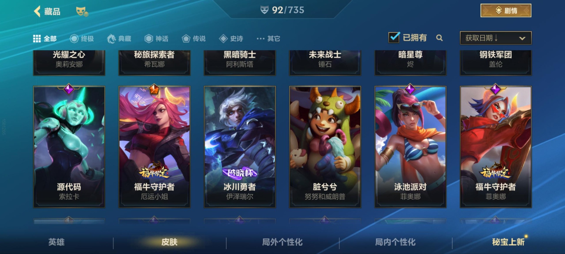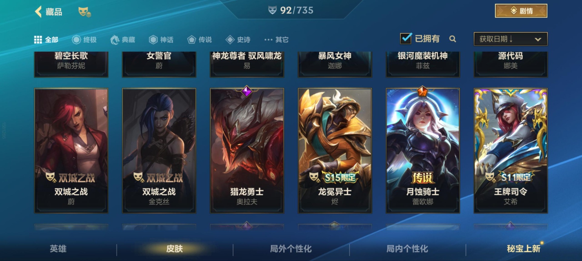 [11515813]可二次 可修改实名 2神话 8传说 32史诗 92皮肤 107英雄 翡翠 皮肤:锤石-神龙尊者 钢铁之龙,锤石-灵魂莲华,锤石-未来战士,锤石-西部魔影,锤石-暗星,菲奥娜-绯金丽刃,菲奥娜-福牛守护者,菲奥娜-玉剑传说 无双,菲奥娜-泳池派对,菲奥娜-皇家守卫,阿利斯塔-福牛守护者,阿利斯塔-海克斯科技,阿利斯塔-黑暗骑士,阿利斯塔-哞利斯塔,娜美-至臻 玉剑传说 寒潭夭夭,娜美-绯金鲛灵,娜美-源代码,娜美-河水之灵,萨勒芬妮-碧空长歌,萨勒芬妮-悦鼓春生,萨勒芬妮-K/DA ALL OUT,布里茨-兔宝宝,布里茨-苹果机器人,奥拉夫-猎龙勇士,奥拉夫-黑暗骑士,艾希-王牌司令,艾希-神龙尊者 苍龙,阿木木-小小骑士,阿木木-殇之机器人,厄运小姐-福牛守护者,厄运小姐-西部牛仔,内瑟斯-单身贵族,内瑟斯-创世魔神,凯南-超武乾坤:电弧,凯南-奈落之炎,奥莉安娜-光耀之心,奥莉安娜-暗星,菲兹-欧米伽小队 鬼影蛙人,菲兹-银河魔装机神,卡兹克-死亡绽放,卡兹克-霸天异形,蔚-双城之战,蔚-女警官,布隆-龙冕御盾,布隆-圣诞老人,希瓦娜-秘旅探索者,希瓦娜-冰霜亚龙,韦鲁斯-暗星,韦鲁斯-苍穹之光,娑娜-缪斯女神,娑娜-五连摇滚键盘手,烬-龙冕异士,烬-暗星尊,提莫-熊猫,提莫-兔宝宝,索拉卡-源代码,索拉卡-星之守护者,蕾欧娜-烧烤女神,蕾欧娜-月蚀骑士,安妮-福牛守护者,安妮-小红帽,劫-死亡誓约,劫-冲击之刃,杰斯-光明之锤,璐璐-光耀之灵,凯尔-末世天使,莫甘娜-刀锋女王,迦娜-暴风女神,崔丝塔娜-娜就去看看,加里奥-风执事,伊泽瑞尔-冰川勇者,奥瑞利安·索尔-灰烬领主,辛吉德-炼金狂士,慎-腥红之月 鬼武者,雷克顿-枯萎之壤,维迦-穿着正装的恶魔,阿狸-偶像歌手,赛娜-西部天使,金克丝-双城之战,古拉加斯-碎桶者,嘉文四世-福牛守护者,赵信-秘密特工,孙悟空-三昧真火,格雷福斯-战斗教授,伊芙琳-绯金魅影,努努和威朗普-脏兮兮,雷恩加尔-暗黑武士,盖伦-钢铁军团,易-神龙尊者 驭风啸龙,德莱文-绯金战斧,德莱厄斯-福牛守护者