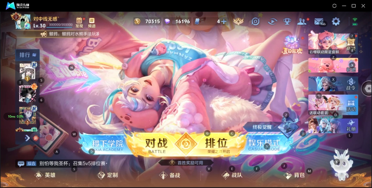 - PX_2081553-实名: 可修改 时装数: 569 载具数: 4 枪械数: 242 战备数: 169 神级装扮: 金蛇镇世-烛九【3级】 热门装扮: 万圣娃娃,银刃赛罗,洛天依,炫光之旅,暗夜魅影,宙之时溯,星云暗核,千金淑猫,星穹咏叹调 载具: 赤兔,照夜玉狮子,护世瑞兽,辉羽雀灵自行车 稀有枪皮: MG3洛神天依【7级】,M416风花雪月【7级】,M249蓝莓炮弹【7级】,Kar98k绿意
