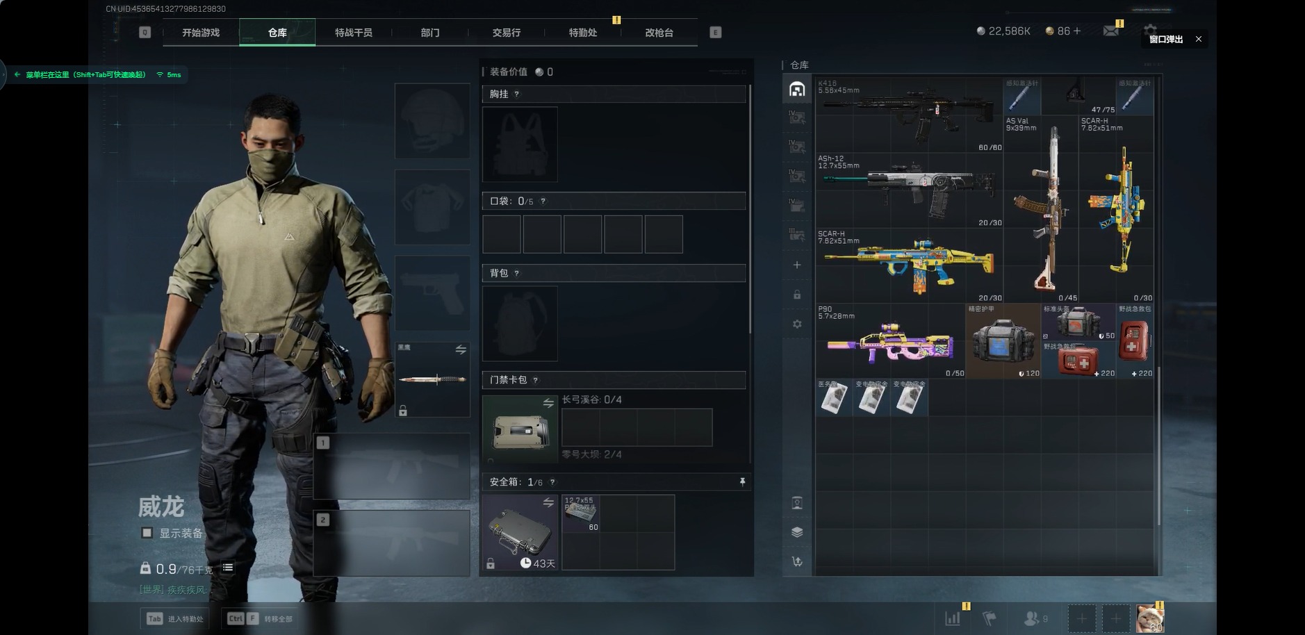 - [11284316]总资产:126.7 7传说枪械 进阶安全箱(2×2)9.15号到期 可二次 可修改实名 烽火地带段位:青铜 全面战场段位:军士长 哈夫币:90.639 传说武器皮肤:UZI冲锋枪-特斯拉线圈,SR-3M紧凑突击步枪-特斯拉线圈,AK-12突击步枪-特斯拉线圈,复合弓-黑-天际线,CAR-15突击步枪-阿米娅,M4A1突击步枪-阿米娅,勇士冲锋枪-能天使-午夜邮差 史诗武器皮肤:PKM通用机枪-蝮蛇,SV-98狙击步枪-林中猎手,SCAR-H战斗步枪-囚徒,SVD狙击步枪-阿萨拉工艺,S12K霰弹枪-曙光