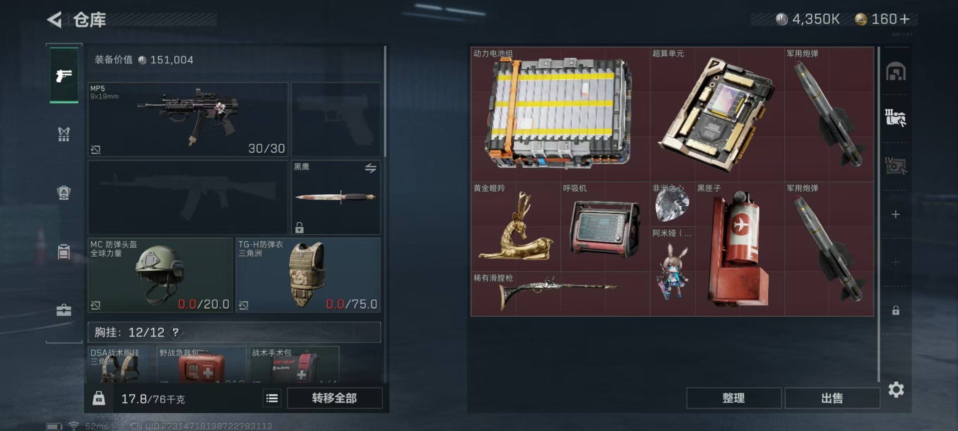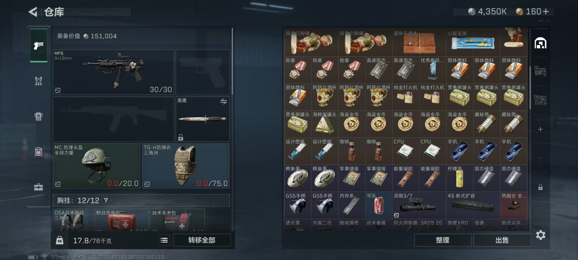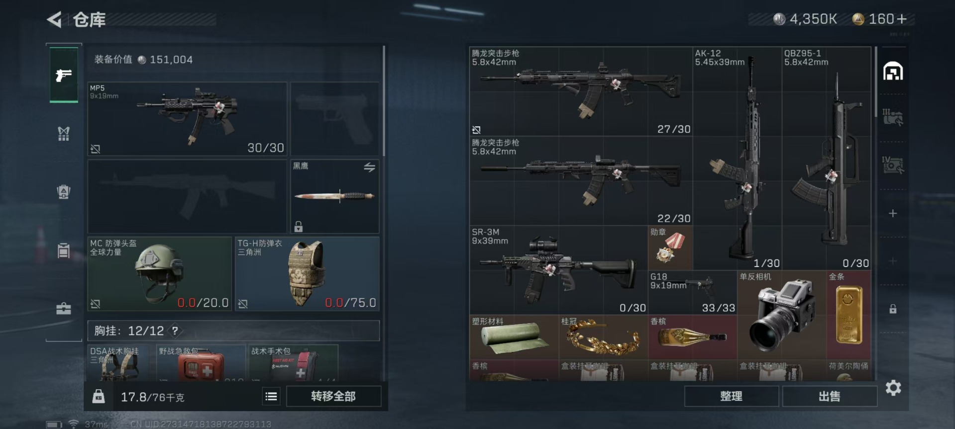 - [11443588]总资产:135.9M 1近战传说 10传说枪械 哈夫币:46.261K 可二次 可修改实名 优质装备:近战-黑海 烽火地带段位:铂金 全面战场段位:上等兵 传说武器皮肤:SR-25射手步枪-水墨云图,AK-12突击步枪-夜鹰,SMG45冲锋枪-骑士,UZI冲锋枪-流光铂影,G18-飞虎,勇士冲锋枪-能天使-午夜邮差,MP5冲锋枪-黑海,QJB201轻机枪-黑海,CAR-15突击步枪-黑鹰坠落