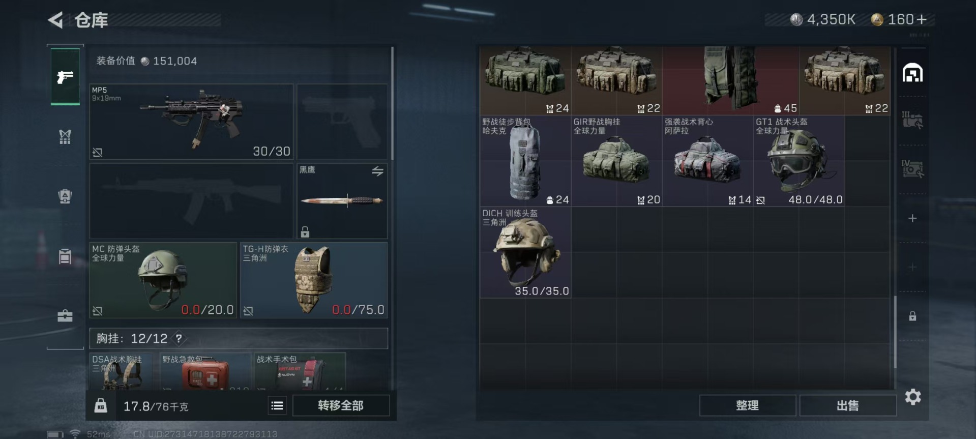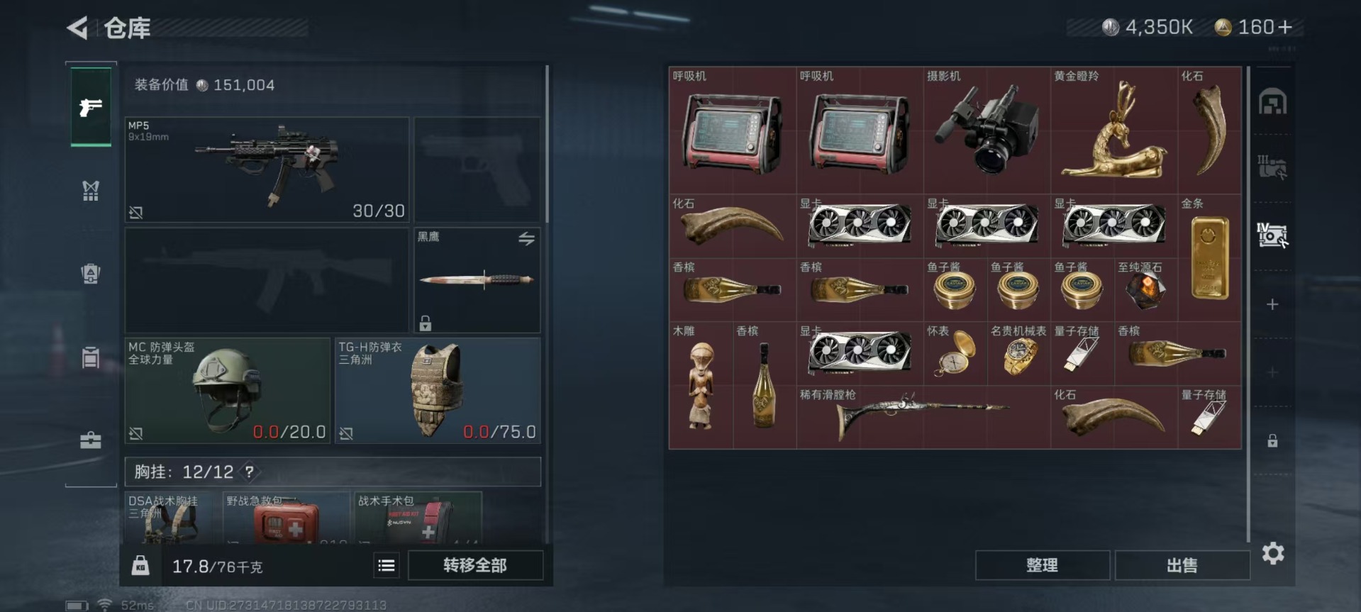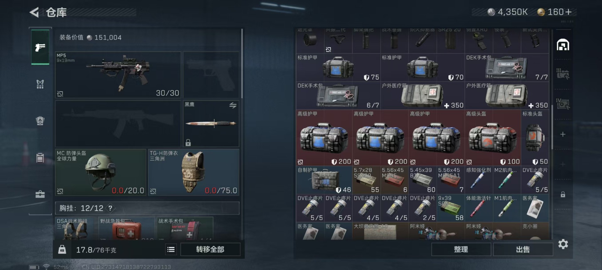 - [11443588]总资产:135.9M 1近战传说 10传说枪械 哈夫币:46.261K 可二次 可修改实名 优质装备:近战-黑海 烽火地带段位:铂金 全面战场段位:上等兵 传说武器皮肤:SR-25射手步枪-水墨云图,AK-12突击步枪-夜鹰,SMG45冲锋枪-骑士,UZI冲锋枪-流光铂影,G18-飞虎,勇士冲锋枪-能天使-午夜邮差,MP5冲锋枪-黑海,QJB201轻机枪-黑海,CAR-15突击步枪-黑鹰坠落