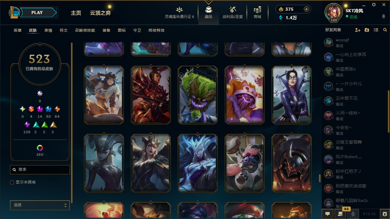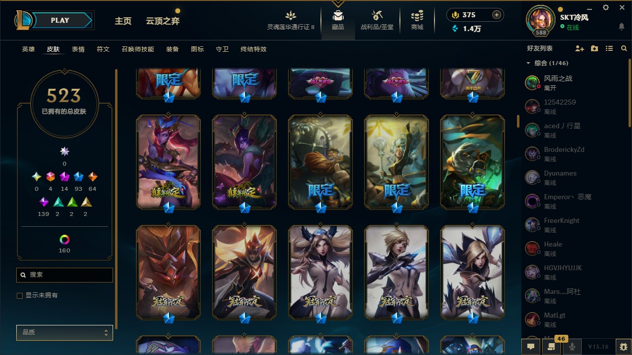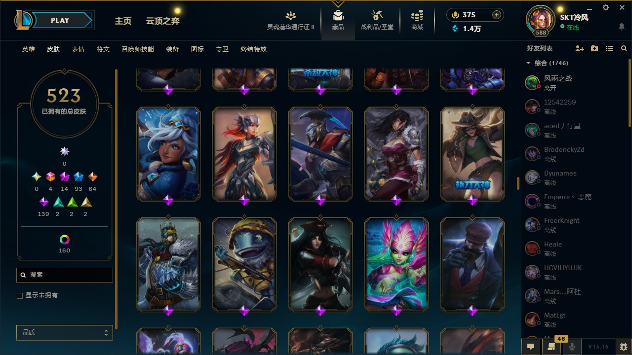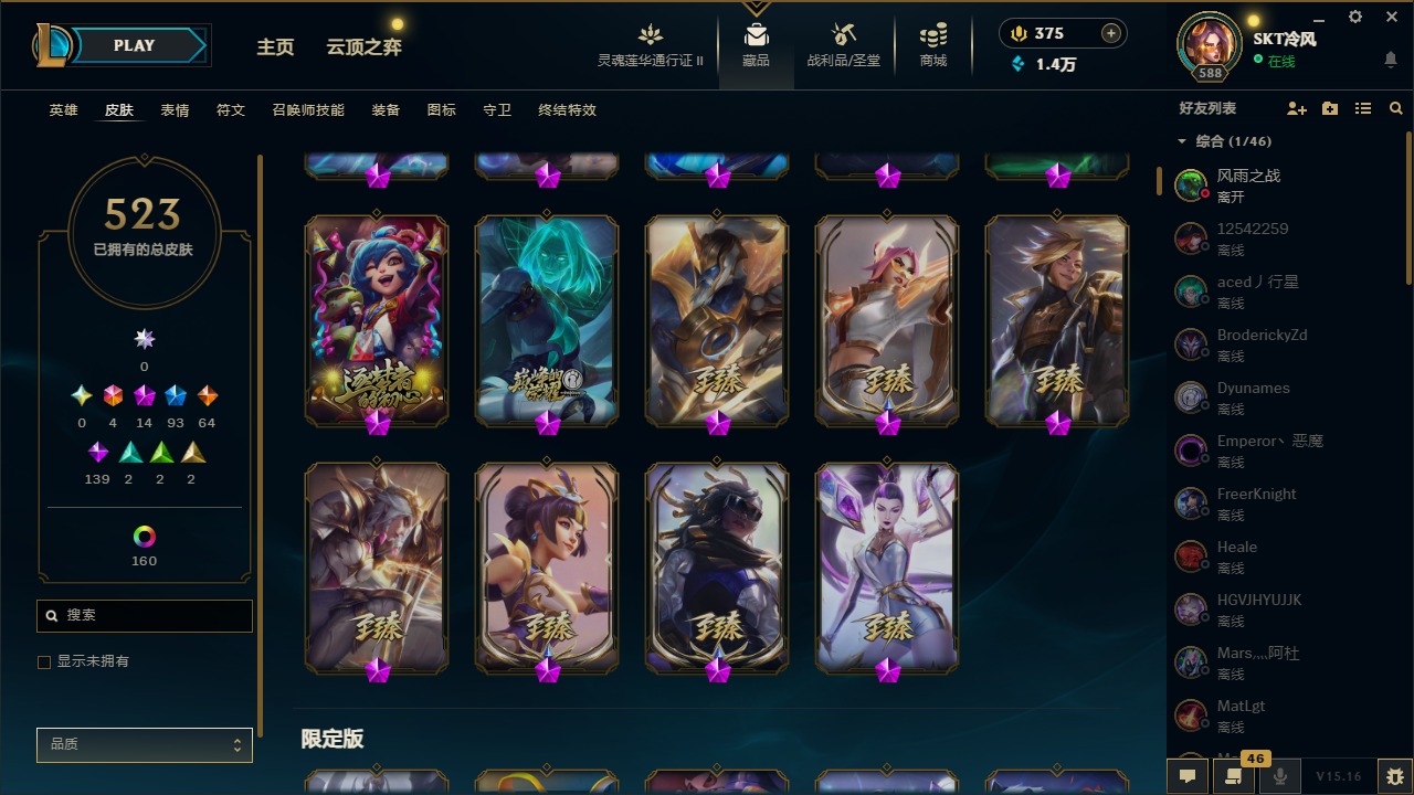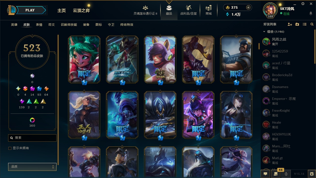 [11516440]可二次 可修改实名 4终极 14神话 2臻彩 93限定 64传说 139史诗 523皮肤 176炫彩 158英雄 皮肤:咖啡甜心 格温,灵魂莲华 莉莉娅,神龙尊者 炎龙瑟提,王国机神苍狼 瑟提,黎明使者 永恩,战斗学院 永恩,光明哨兵 派克,灵能特工 派克,怨之砂 派克,黑夜使者 厄斐琉斯,山海绘卷 妮蔻,星之守护者 妮蔻,弗雷尔卓德 塞拉斯,窃魂修罗 塞拉斯,雷霆领主 奥恩,暮星之羽 霞,晨星之翎 洛,宇航员 巴德,巴德·吟游诗人,冰雪游神 巴德,永恒之森 巴德,SKT T1 卡莉丝塔,腥红之月 卡莉丝塔,灌篮高手 艾翁,泳池派对 雷克塞,上古战魂 雷克塞,虚空使者 俄洛伊,西部魔影 锤石,暗星 锤石,SSW 锤石,冠军典狱长 锤石,灵能特工 莎弥拉,幽冥领主 阿兹尔,星际之门 阿兹尔,源代码 娜美,河水之灵 娜美,胜利之剑 亚托克斯,腥红之月 亚托克斯,霸天剑魔 亚托克斯,仲裁圣骑 亚托克斯,双城之战 蔚,源计划:裁决 蔚,炼狱魔女 蔚,铁拳执事 蔚,霓虹杀拳 蔚,真实伤害 奇亚娜,真实伤害 艾克,源计划:自由 艾克,时之砂 艾克,爵士 克烈,天煞 劫,死亡誓约 劫,冠军之隐 劫,源计划:阴 劫,冲击之刃