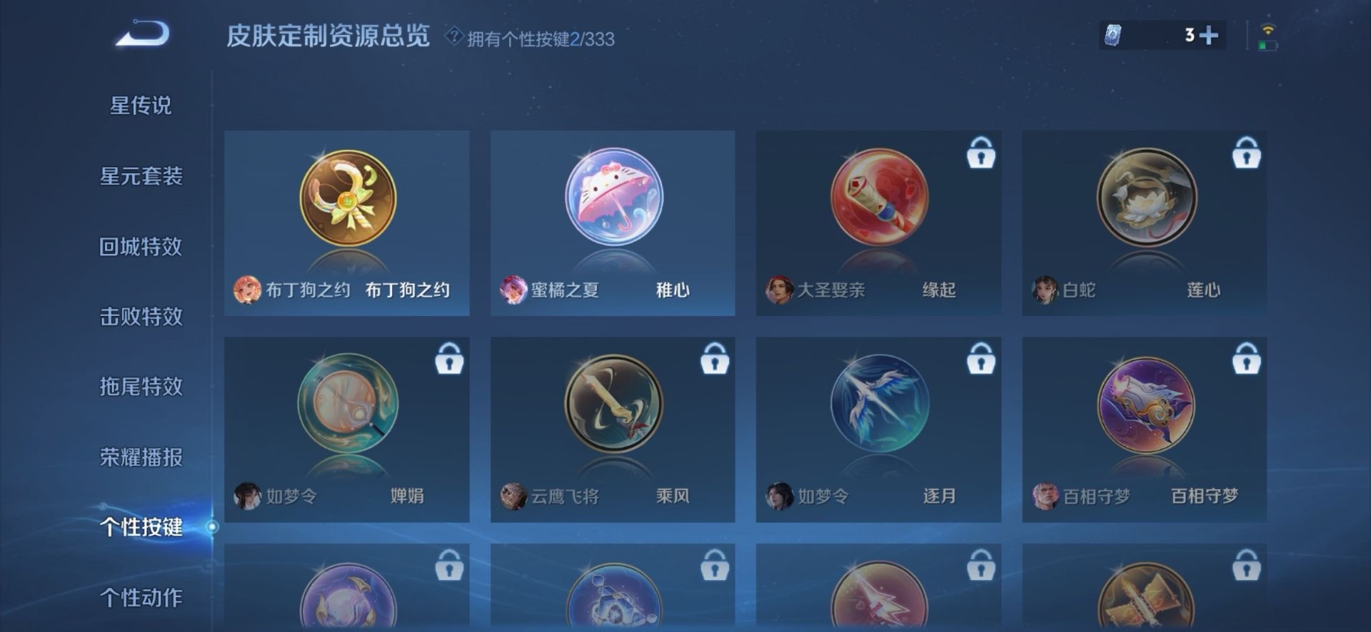 赵云百木心枪,干将莫邪冰霜恋舞曲,镜匿光追影者,诸葛亮时雨天司,公孙离蜜橘之夏,裴擒虎李小龙,上官婉儿梁祝,花木兰默契交锋,孙悟空至尊宝,马超神威,云中君时之祈愿,韩信傲雪梅枪