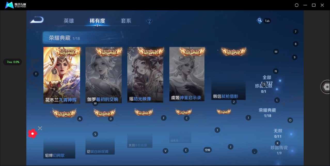 - [11625722]V7 1典藏 7传说 125英雄 210皮肤 可修改实名 优质装备:全息碎影(猴子典藏),炽阳神光,末日机甲-孙尚香(绿蚂蚱),澜逐花归海 传说皮:幻光神枪 珍宝阁皮:妄想食味,胡桃夹子,女武神 限定皮:愿照·九州拓(澜年限),愿照·岁时盈(虞姬年限),鸣野蒿,高山流水,五谷丰年,李小龙,山海·玄木吟(马可年限) 史诗皮:鸭鸭历险记-刘禅,器灵·浮梦炉,绮世丹青,化蝶舞,星界战将,龙之律动,百相守梦-周瑜,茶境仙,怒海争锋,蔬乡物语(鲁班七号),百相守梦-黄忠,特工魅影,千年之狐,永昼,江河有灵,魅语,高渐离燃音魔法,蒙恬荣光圣徽,青蛇,猫狗日记-孙策,乱世虎臣,水果甜心,天才门将,星夜王子,功夫厨神,德古拉伯爵,暗隐猎兽者,幽灵船长,天秀·启明,地狱岩魂,诗语江南,纤云弄巧,缤纷独角兽,乘风破浪,逐浪之夏,水晶猎龙者,曙光守护者,箭羽风息,金属风暴,鹰眼统帅,魅力维加斯,无心