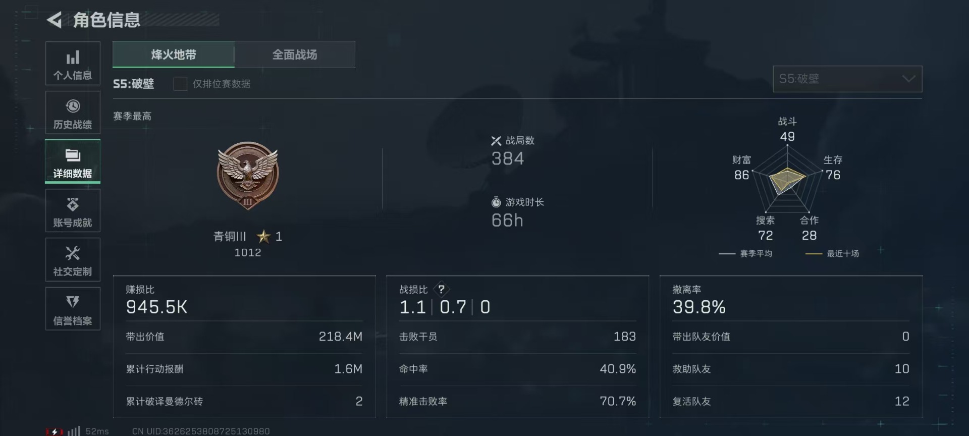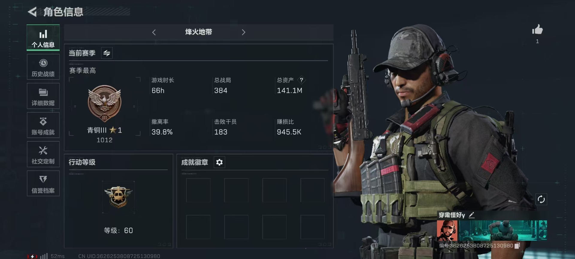 [11516927]总资产:141.1M 哈夫币:43.814K 可二次 可修改实名 烽火地带段位:青铜 全面战场段位:无段位