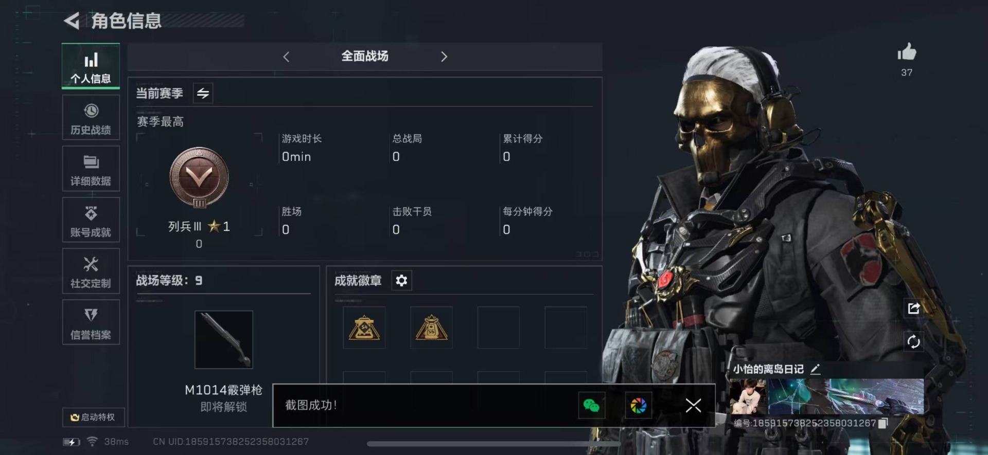 - [11228405]实名: 可修改 时装数: 319 枪械数: 119 战备数: 65 热门装扮: 洛天依,憨憨奶龙,光极星 稀有枪皮: M416风花雪月,SCAR-L-锦绣绵绵,M416墨龙九天,Kar98K-巳巳如意