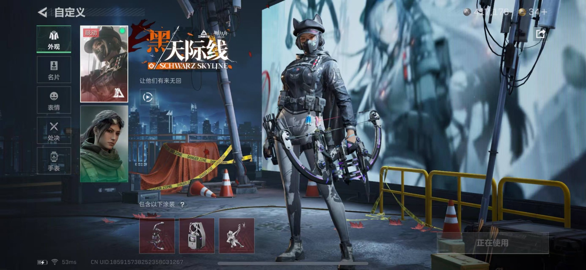 [11516989]总资产:188.3 4干员外观 3近战传说 20传说枪械 顶级安全箱(9.17到期) 可二次 可修改实名 烽火地带段位:黑鹰 全面战场段位:列兵 哈夫币:417.176 传说武器皮肤:近战-影锋,近战-黑海,近战-北极星,SR-25射手步枪-水墨云图,AK-12突击步枪-夜鹰,SMG45冲锋枪-骑士,QJB201轻机枪-黑海,MP5冲锋枪-黑海,G3战斗步枪-幻想曲,复合弓-黑-天际线,CAR-15突击步枪-阿米娅,QCQ171冲锋枪-北极星,K437突击步枪-北极星,K416突击步枪-幻想曲,M250通用机枪-游乐场,M870霰弹枪-游乐场,AUG突击步枪-游乐场,M7战斗步枪-维京,M4A1突击步枪-蚀金玫瑰,P90冲锋枪-神秘艺术 史诗武器皮肤:QBZ95-1突击步枪-ACE,AUG突击步枪-特勤执行,M700狙击步枪-蝮蛇,PKM通用机枪-蝮蛇,AS Val突击步枪-尖端治疗,M700狙击步枪-守夜人,Ash-12战斗步枪-守夜人,MP5冲锋枪-深海恐惧,勇士冲锋枪-深海恐惧,SG552突击步枪-深海恐惧,AKM突击步枪-林中猎手,SVD狙击步枪-暗夜猎手,M16A4突击步枪-竞赛选手,M1014霰弹枪-林中猎手,SV-98狙击步枪-林中猎手,PTR-32突击步枪-英雄,M250通用机枪-囚徒,SCAR-H战斗步枪-囚徒,UZI冲锋枪-危险实验,M249轻机枪-维京,SCAR-H战斗步枪-危险实验,沙漠之鹰-曙光,K416突击步枪-竞技风,Vector冲锋枪-阿萨拉文明,M700狙击步枪-竞技风,93R-博士 干员外观:红狼-蚀金玫瑰,牧羊人-街头之王,无名-夜鹰,露娜-黑·天际线