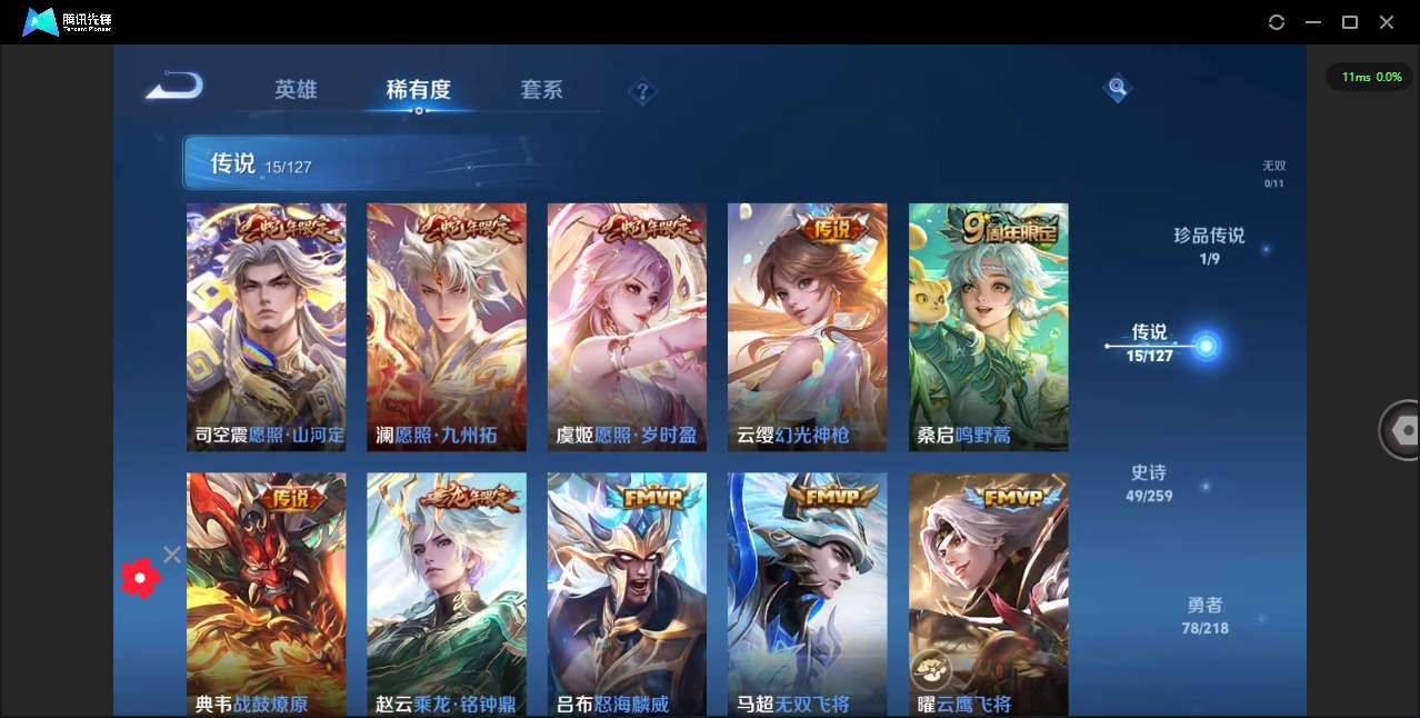 - [11526491]V7 3传说 124英雄 309皮肤 可修改实名 优质装备:久胜战神,李逍遥 珍宝阁皮:妄想食味,优雅恋人,蔷薇恋人,女武神 限定皮:鸣野蒿,神威(电光马子),遇见飞天,高山流水,五谷丰年,冰锋战神,游园惊梦,梁祝,御风骁将(吕布年限),天狼狩猎者,逐梦之星,李小龙,霸王别姬-虞姬,猪悟能,青春决赛季,匿光追影者 史诗皮:石田雨龙,紫霞仙子,黄金分割率,特工魅影,千年之狐,永昼,江河有灵,魅语,蒙恬荣光圣徽,偶像歌手,晚萤,电玩·爆裂旋风,龙骑士(小龙虾),末日机甲-吕布,猫狗日记-孙策,猫狗日记-大乔,乱世虎臣,节奏热浪,修罗,女仆咖啡,摇滚巨星,水果甜心,绅士熊喵,天才门将,星夜王子,心灵骇客,功夫厨神,德古拉伯爵,暗隐猎兽者,幽灵船长,鬼剑武藏,心灵战警,舞动绿茵,地狱岩魂,诗语江南,纤云弄巧,繁星吟游(呼啦呼啦),拒霜思,缤纷独角兽,乘风破浪,逐浪之夏,水晶猎龙者,曙光守护者,箭羽风息,金属风暴,原初追逐者,圣诞狂欢,圣诞恋歌,鹰眼统帅,王者之锤,暗夜贵公子,魅力维加斯,黎明之约,未来纪元-赵云