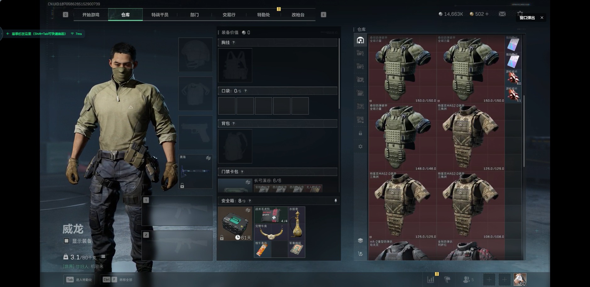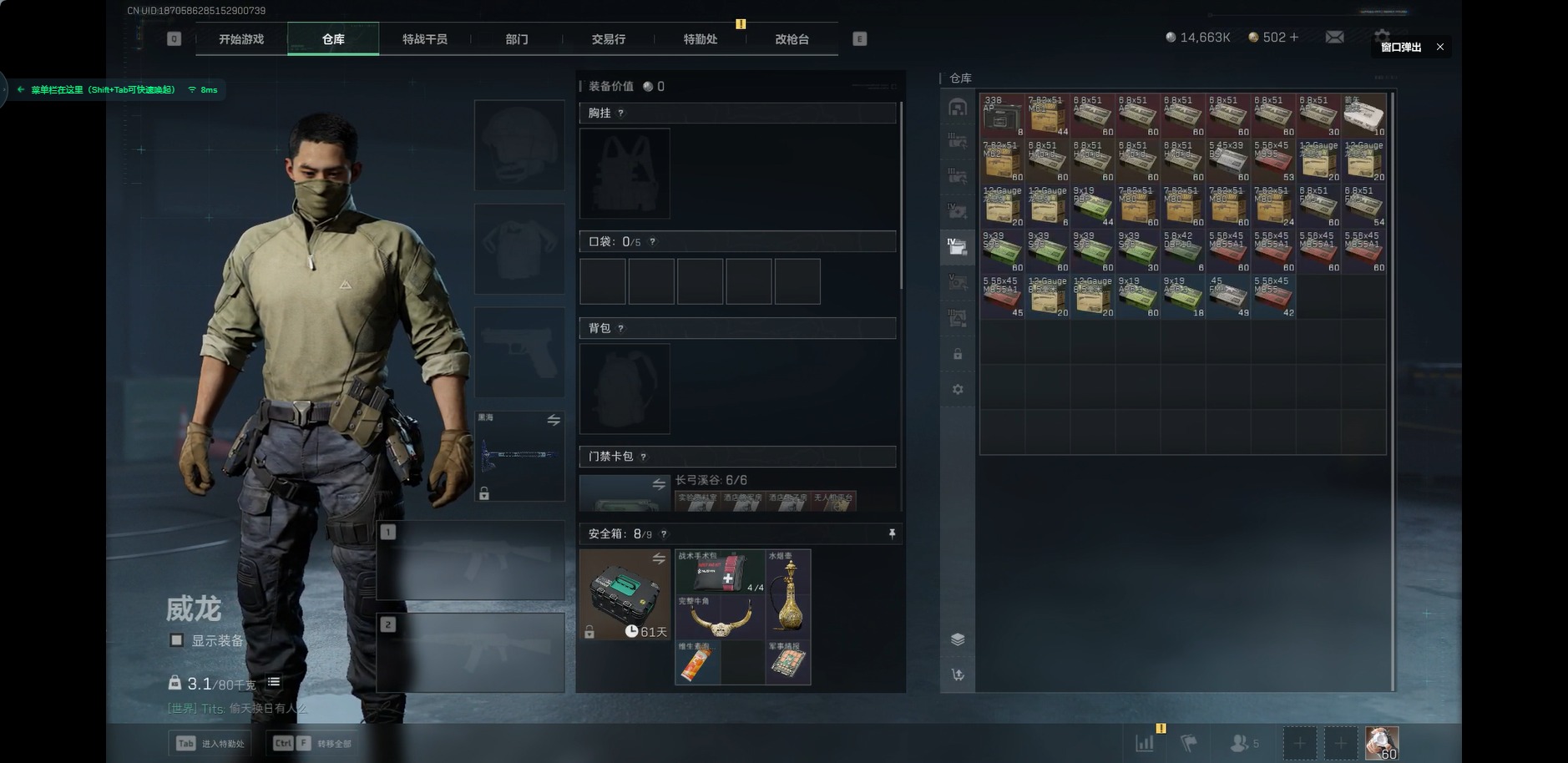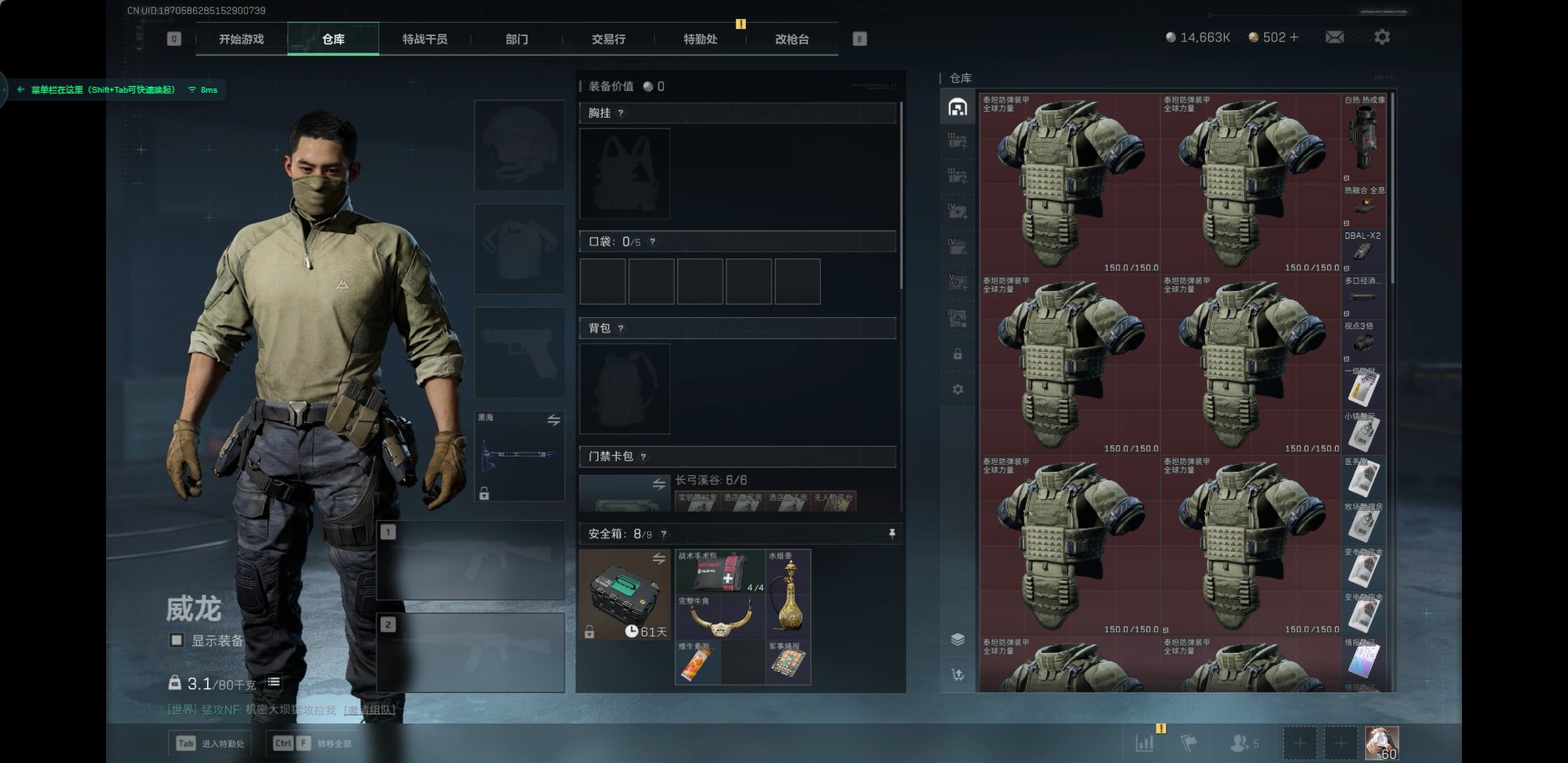 [11517310]可二次 可修改实名 实名:可修改 顶级安全箱(3×3)9.1号到期 总资产:153.6 哈夫币:14.663 传说武器皮肤:近战-黑海,M4A1突击步枪-蚀金玫瑰 史诗武器皮肤:M4A1突击步枪-特勤执行 干员外观:红狼-蚀金玫瑰