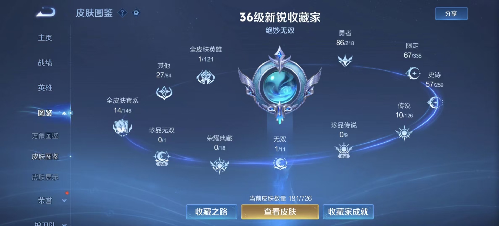 - PX_2084766-【贵族9 嘎嘎质量!!】 贵族等级: V9 英雄数: 122 皮肤数: 328 荣耀水晶: 鸣剑·曳影,全息碎影 星传说: 零号·雷霆,幽冥火 传说皮: 黄金狮子座,黄金射手座,冠军飞将,云鹰飞将,绛天战甲,猫影幻舞,久胜战神,炽阳神光,一念神魔,云霓雀翎,末日机甲-孙尚香,地狱火,零号·赤焰,飞鸢探春,李逍遥,超时空战士-狄仁杰,遇见胡旋,碎云,典韦战鼓燎原,黄金天蝎座,云