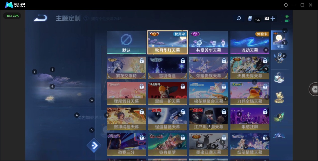 大乔猫狗日记,刘邦德古拉伯爵,夏侯惇乘风破浪,阿轲节奏热浪,铠曙光守护者,曹操幽灵船长,伽罗箭羽风息,廉颇地狱岩魂,小乔缤纷独角兽,孙策猫狗日记,不知火舞魅语,鲁班七号电玩小子,吕布圣诞狂欢,露娜紫霞仙子,周瑜雪夜绮愿,诸葛亮黄金分割率,刘禅电玩·爆裂旋风,司马懿暗渊魔法,宫本武藏鬼剑武藏,公孙离无限星赏官,兰陵王暗隐猎兽者,貂蝉圣诞恋歌,花木兰水晶猎龙者,安琪拉心灵骇客,安琪拉时之奇旅,西施诗语江南,白起星夜王子,亚瑟心灵战警,程咬金功夫厨神,百里玄策原初追逐者,雅典娜黎明之约,百里守约特工魅影,李元芳逐浪之夏,墨子金属风暴,瑶遇见神鹿,娜可露露晚萤,王昭君偶像歌手,嫦娥拒霜思,橘右京修罗