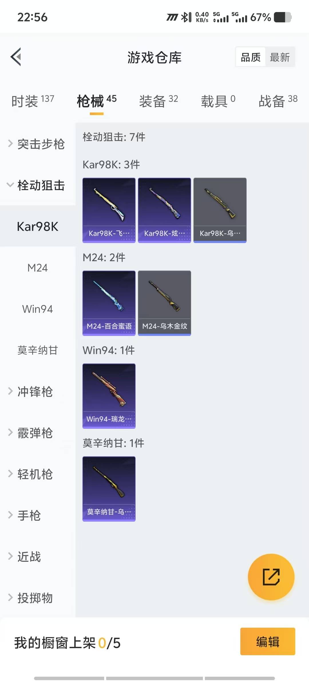 - PX_2101274-??/枪械11/装备295/载具2/战备163/王牌印记17/热力值90262/六级AKM-甜心宝贝/六级SCAR-L-童趣迷兔/六级M416-心之恋语/三级M416-墨龙九天/五级AUG-暖羊咩咩/六级UMP45-恐龙拽拽/三级P90-沙丘之主/五级Kar98K-巳巳如意/三级M24-镜域双华/四级SLR-暗夜玫瑰/五级M249-蓝莓炮弹/二级墨龙九天-敖渊/墨龙九天-敖渊
