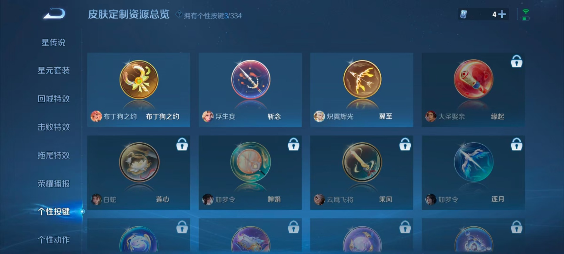 伽罗天狼溯光者,干将莫邪冰霜恋舞曲,孙尚香异界灵契,露娜一生所爱,公孙离玉兔公主,裴擒虎李小龙,裴擒虎天狼狩猎者,上官婉儿梁祝,猪八戒猪悟能,孙悟空大圣娶亲,韩信飞衡,百里守约朱雀志