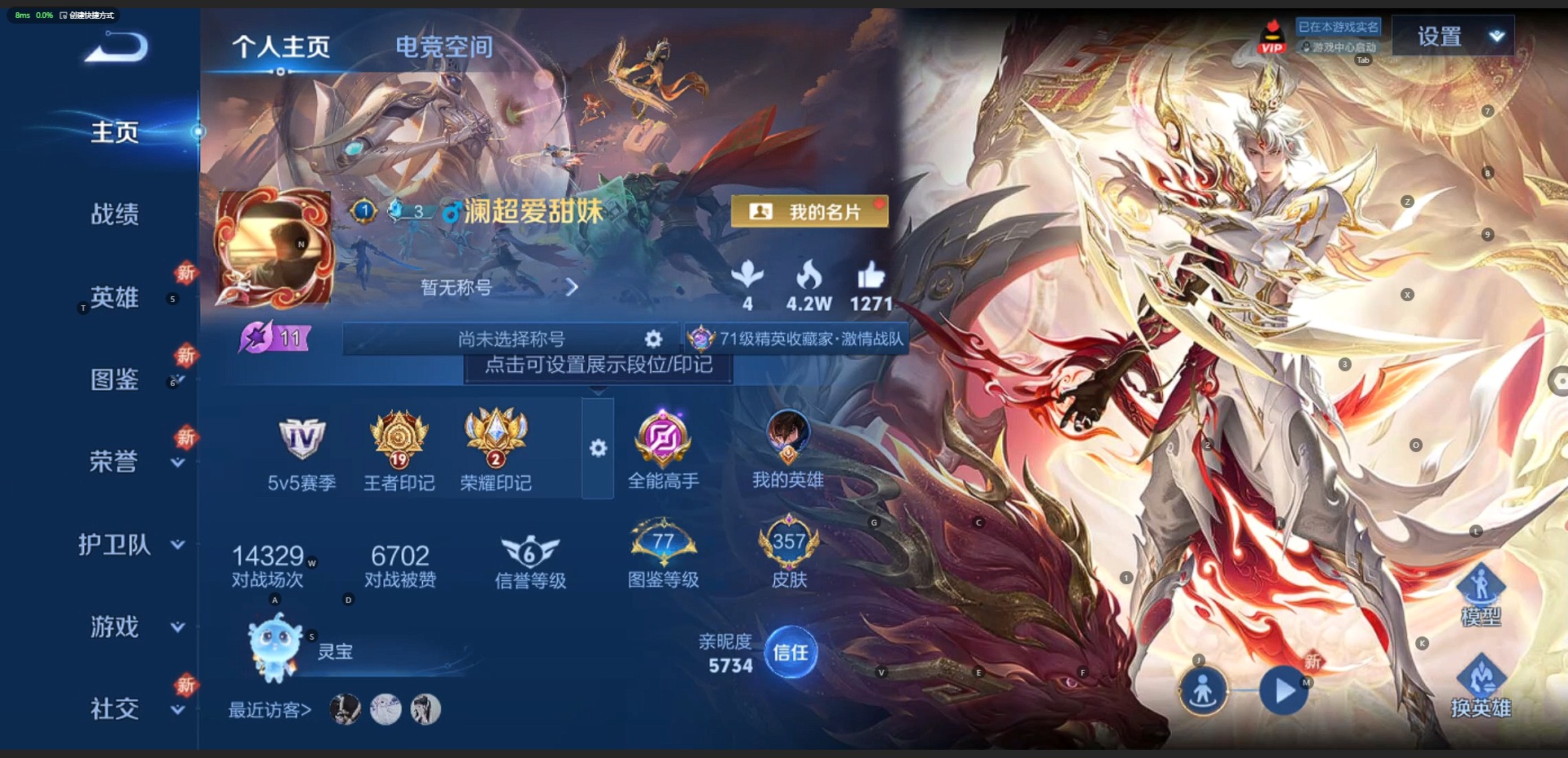 - [12256238]V4 1传说 124英雄 128皮肤 可修改实名 珍宝阁皮:妄想食味 限定皮:鸣野蒿,至尊宝,高山流水,五谷丰年 史诗皮:化蝶舞,龙之律动,百相守梦-黄忠,织梦人,时之恋人-孙尚香,节奏热浪,水果甜心,绅士熊喵,天才门将,幽灵船长,鬼剑武藏,逐浪之夏,水晶猎龙者,曙光守护者,金属风暴,鹰眼统帅,魅力维加斯