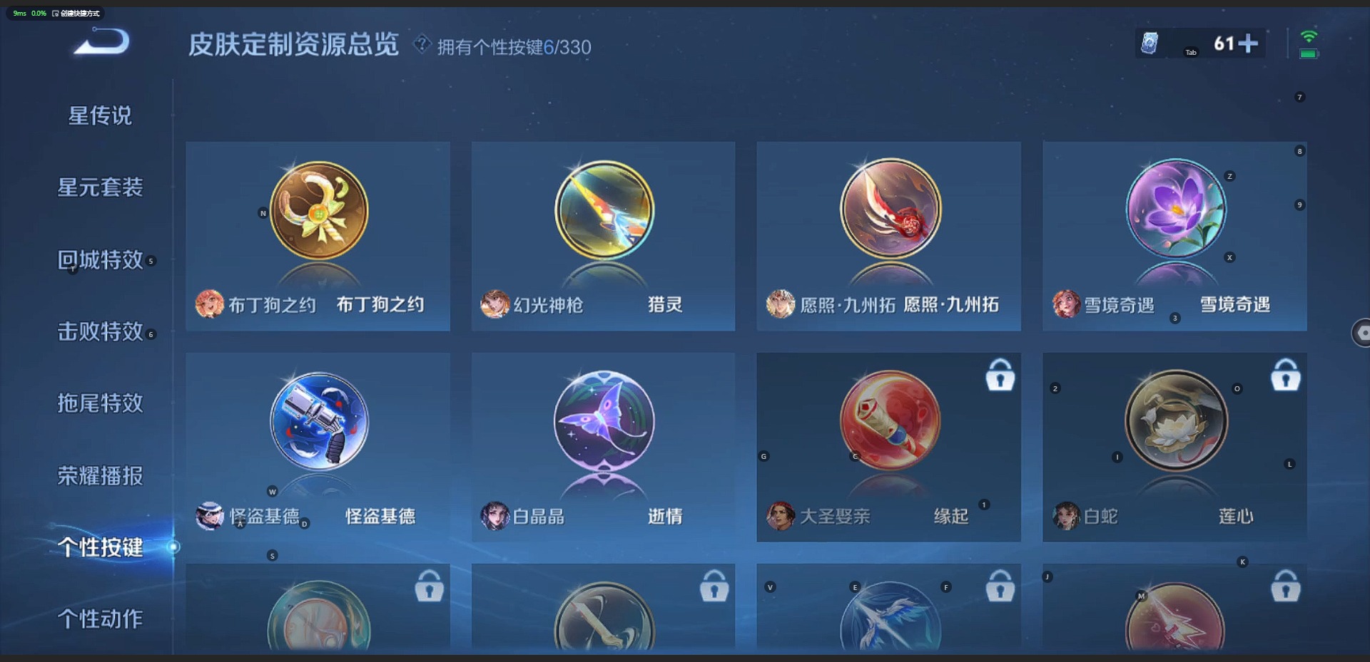 吕布御风骁将,后羿如梦令,后羿辉光之辰,诸葛亮时雨天司,裴擒虎李小龙,上官婉儿梁祝,花木兰默契交锋,桑启鸣野蒿,孙悟空孙行者,孙悟空大圣娶亲,芈月白晶晶,孙悟空至尊宝,韩信傲雪梅枪,韩信飞衡,韩信逐梦之影,百里守约朱雀志,澜愿照·九州拓,虞姬霸王别姬,关羽冰锋战神
