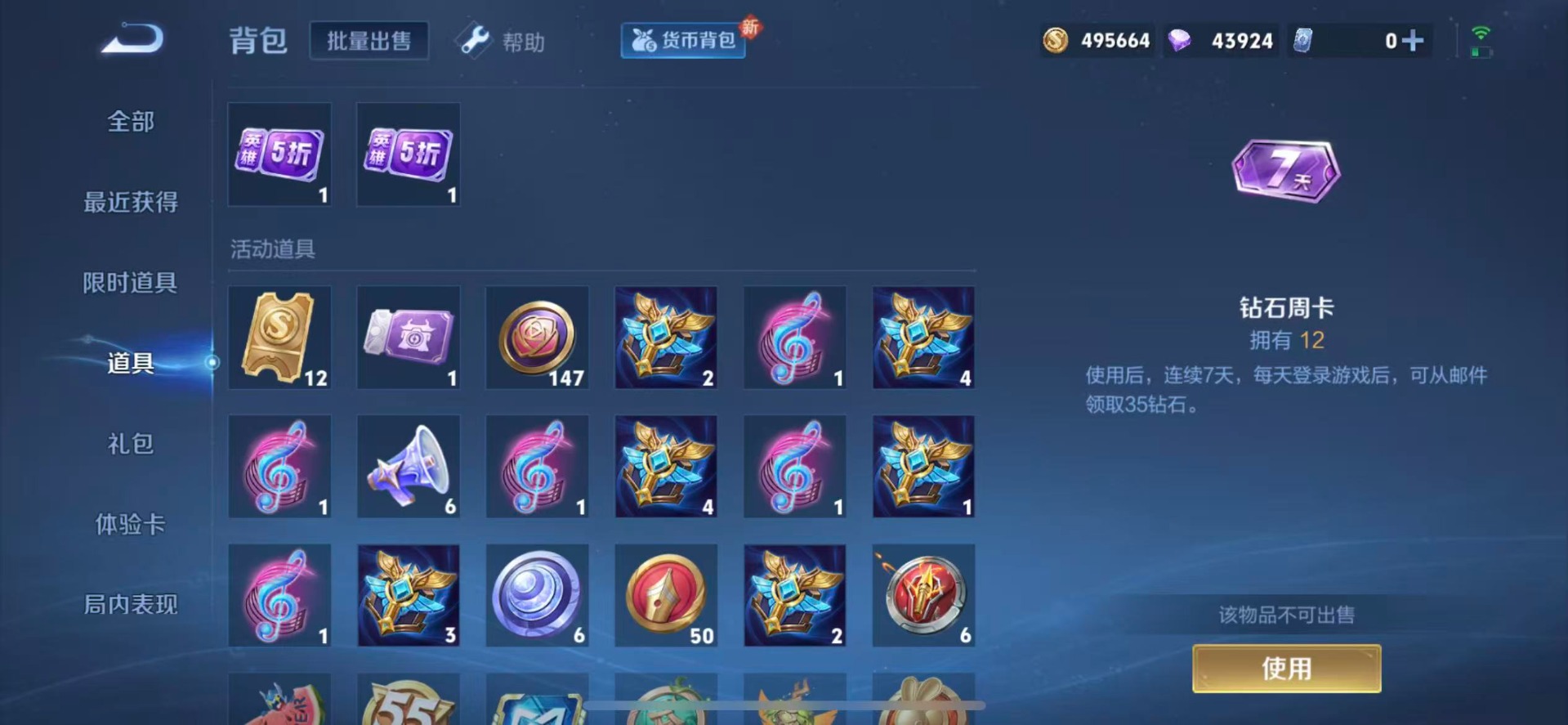 - PX_2095067-实名: 可修改 贵族等级: V7 英雄数: 124 皮肤数: 114 传说皮: 冠军飞将,黄金白羊座,猫影幻舞,超时空战士-狄仁杰,山海·苍雷引,乘龙·淬吴钩 限定皮: 御风骁将,龙胆,烈魂,孙行者,五谷丰年,神器·万象笔,山海·玄木吟