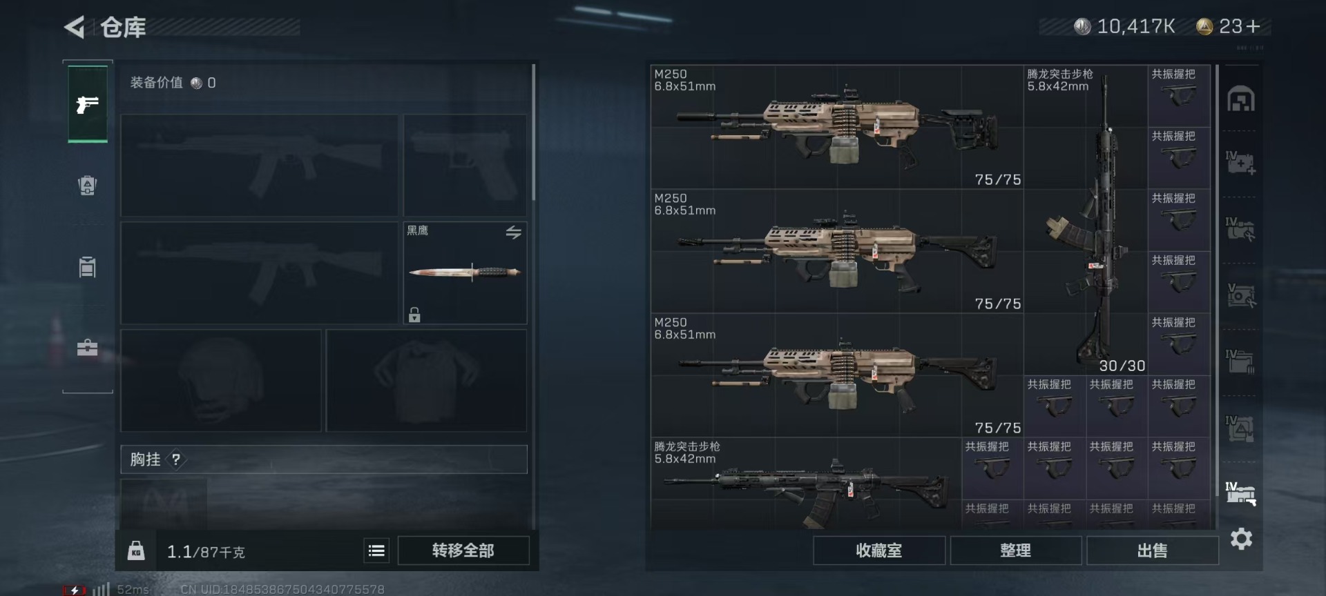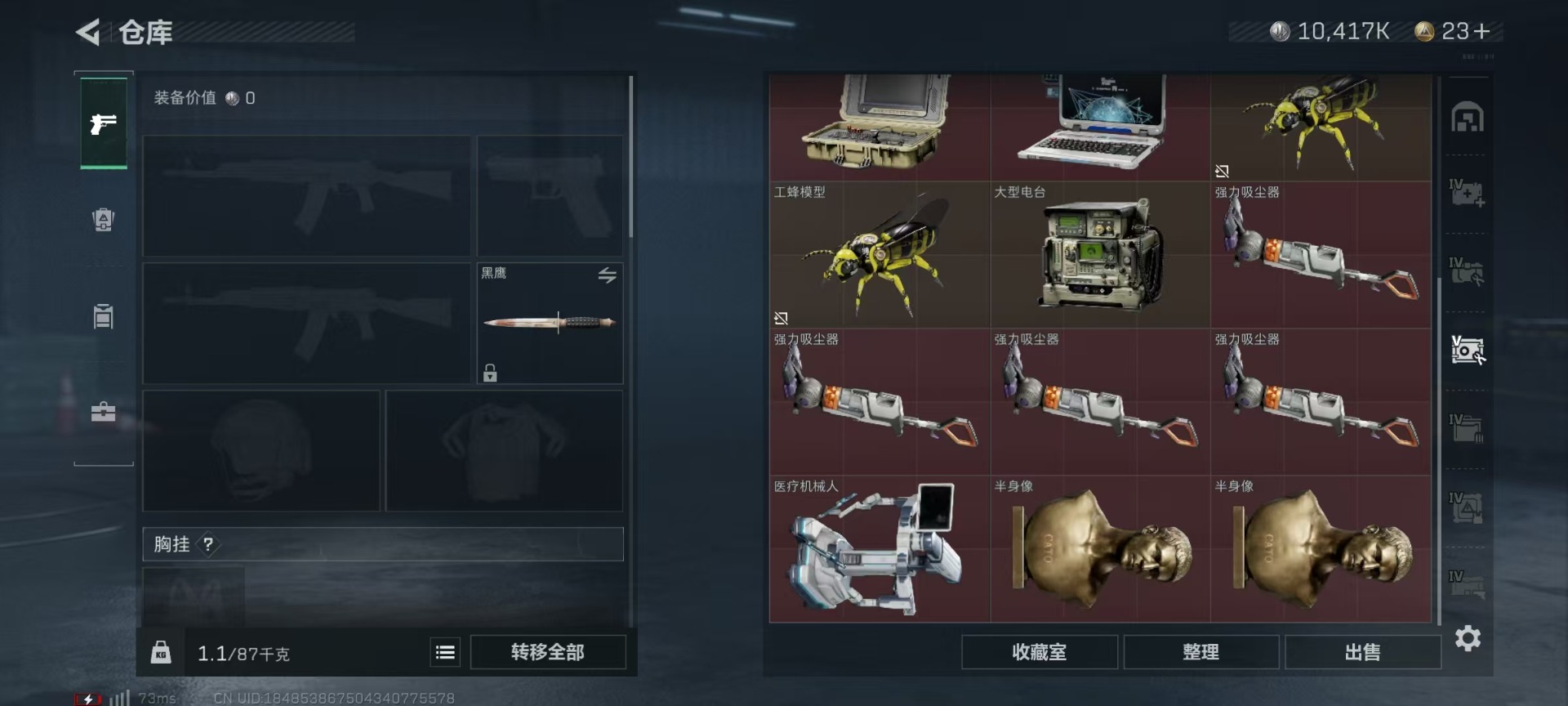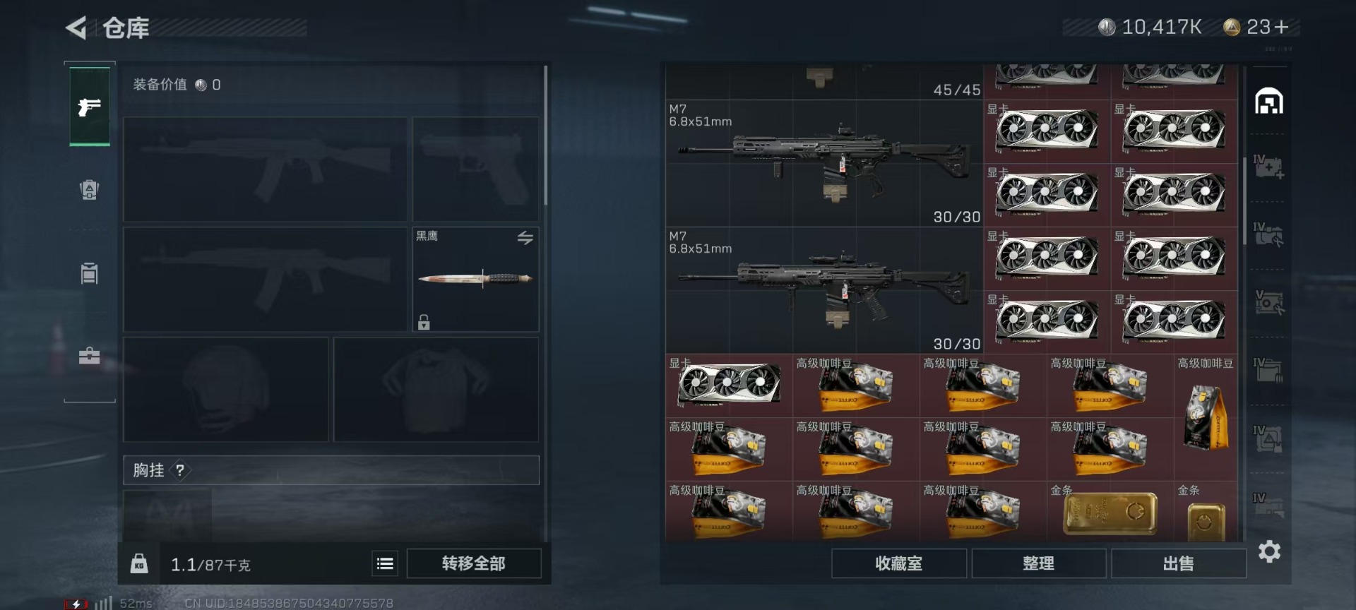 [11518009]总资产:415.5M 1干员外观 4传说枪械 哈夫币:10.417K 高级安全箱(9.17到期) 可二次 可修改实名 烽火地带段位:黑鹰 全面战场段位:将军 传说武器皮肤:M4A1突击步枪-阿米娅,CAR-15突击步枪-阿米娅,G3战斗步枪-狩猎时刻,AK-12突击步枪-特斯拉线圈 史诗武器皮肤:G3战斗步枪-战场英杰,SG552突击步枪-深海恐惧,AKM突击步枪-林中猎手,PTR-32突击步枪-英雄,SCAR-H战斗步枪-囚徒,QBZ95-1突击步枪-曙光,M7战斗步枪-禁卫 干员外观:露娜-黑·天际线