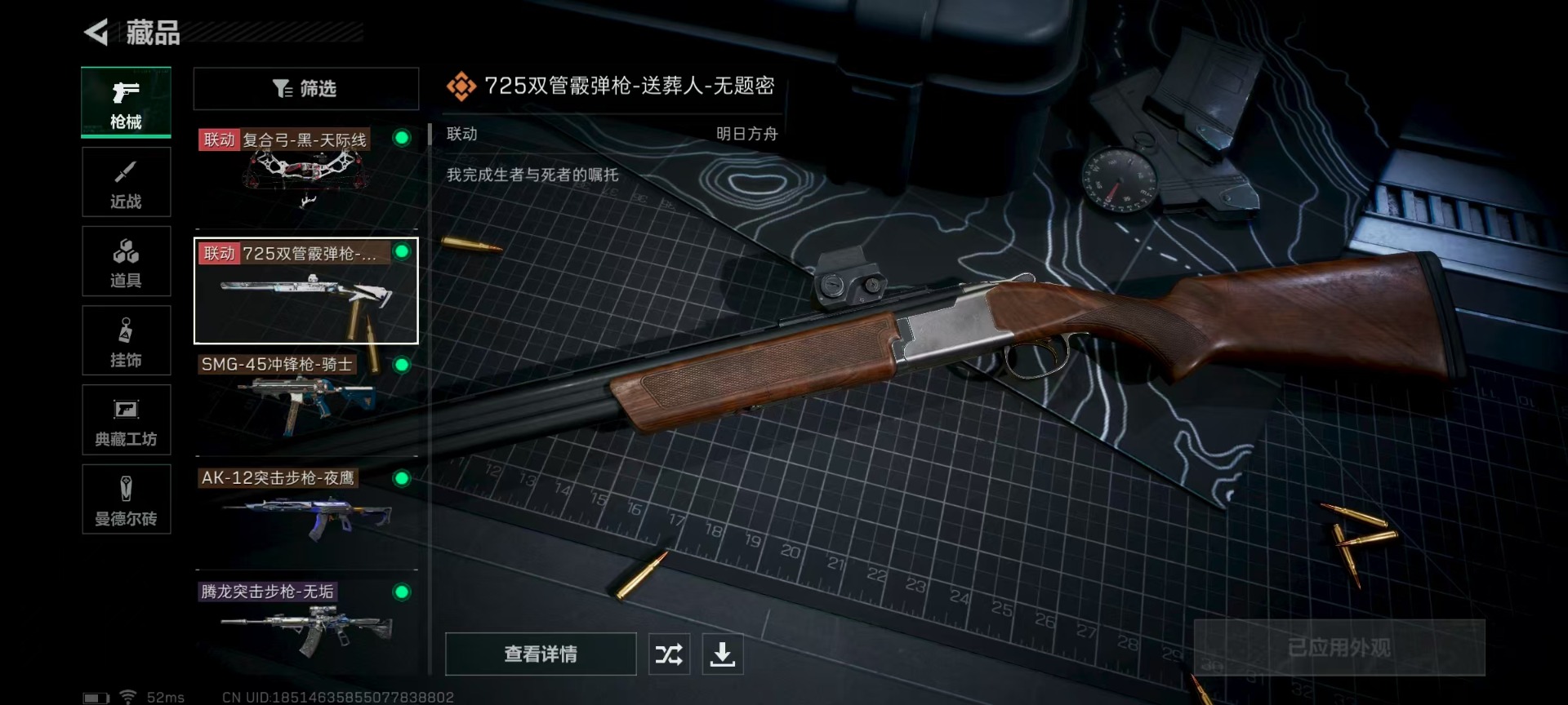 [11518061]总资产:57.1 2干员外观 4传说枪械 高级安全箱(2×3)9.15号到期 可二次 可修改实名 烽火地带段位:钻石 全面战场段位:上等兵 哈夫币:16.986 传说武器皮肤:AK-12突击步枪-夜鹰,SMG45冲锋枪-骑士,复合弓-黑-天际线,725双管霰弹枪-送葬人-无题密令 史诗武器皮肤:AUG突击步枪-蝮蛇,M700狙击步枪-蝮蛇,PKM通用机枪-蝮蛇,G3战斗步枪-战场英杰,SR-25射手步枪-尖端治疗,PKM通用机枪-荒野求生,AS Val突击步枪-尖端治疗,M700狙击步枪-守夜人,SG552突击步枪-尖端治疗,Ash-12战斗步枪-守夜人,SR-3M紧凑突击步枪-荒野求生,SG552突击步枪-深海恐惧,AKM突击步枪-林中猎手,SVD狙击步枪-暗夜猎手,M16A4突击步枪-竞赛选手,PKM通用机枪-守夜人,SVD狙击步枪-荒野求生,M1014霰弹枪-林中猎手,AS Val突击步枪-典狱官,SV-98狙击步枪-囚徒,SCAR-H战斗步枪-囚徒,腾龙突击步枪-无垢,MP7冲锋枪-无垢,QBZ95-1突击步枪-曙光,沙漠之鹰-曙光,Vector冲锋枪-阿萨拉文明,SVD狙击步枪-阿萨拉工艺,PKM通用机枪-英雄 干员外观:蜂医-送葬人·无题密令(S5),露娜-黑·天际线