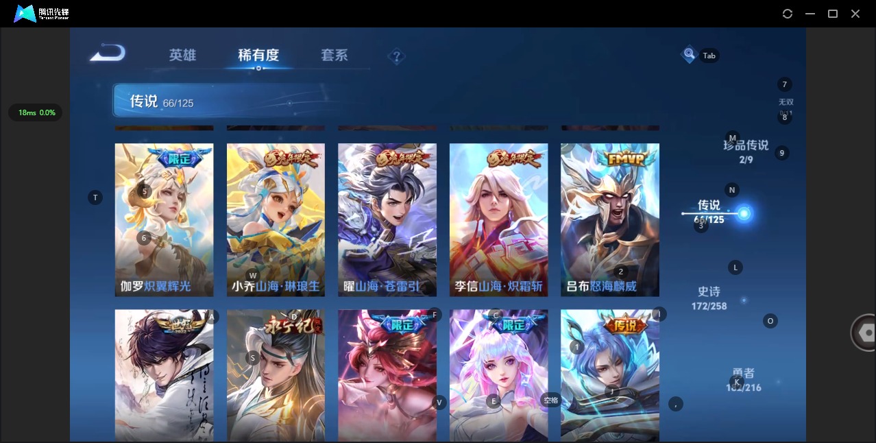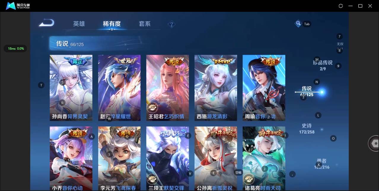 - PX_2111820-Q/尊贵铂金/274皮肤/124英雄/1典藏/0珍品无双/1无双/1珍品传说/17传说/76史诗/8稀有英雄 【1 珍品传说】怪盗基德 马可波罗, 【1 典藏皮肤】九霄神辉 花木兰, 【1 无双皮肤】器灵·螭龙剑 曜, 【17 传说皮肤】启明星使 虞姬,白虎志 百里玄策,李逍遥 曜,零号·赤焰 孙悟空,云鹰飞将 曜,仲夏夜之梦 貂蝉,地狱之眼 宫本武藏,武陵仙君 诸葛亮,炽