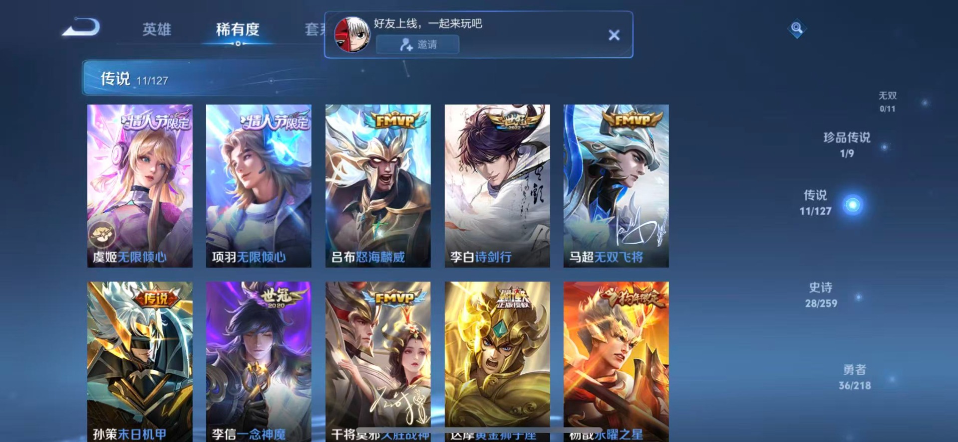 - PX_2004191-安卓Q-贵族积分24597-V7-267皮肤8传说 -(可二次) 242幸运值 惊梅引 幻光神枪 愿照九州拓 愿照山河定 鸣野蒿 岱宗 飞衡 傲雪梅枪 唐三藏 拒霜思 降魔 银河之约 黎明之约 梁祝 狂想玩偶喵 玫瑰异探 炽阳神光 云鹰飞将 胖达荣荣 器灵浮梦炉 战舞者 燃音魔法 伽罗琥珀纪元 百解令 关羽百相守梦 电玩爆裂旋风 原初探秘者 李小龙 暗隐猎兽者 猫狗日记男 金