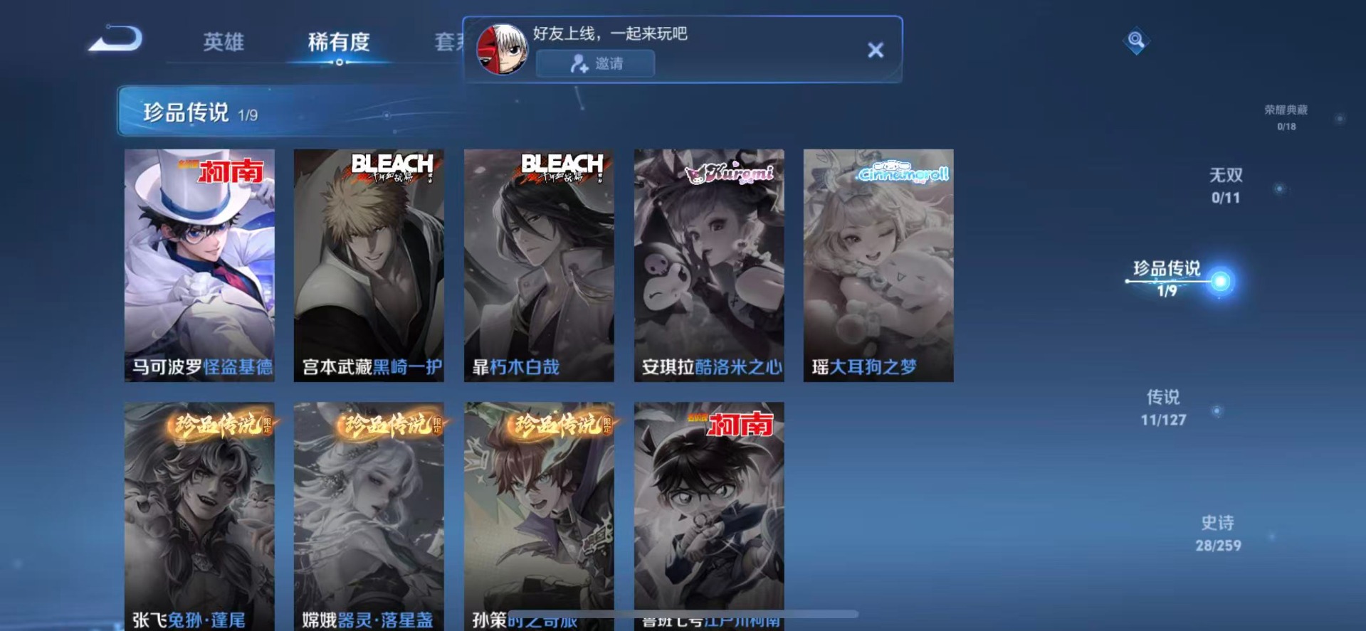 [11518424]V7 1珍品传说 11传说 107英雄 96皮肤 可修改实名 优质装备:怪盗基德,黄金狮子座,久胜战神,一念神魔,地狱之眼,末日机甲-孙策,无双飞将 限定皮:无限倾心-项羽,诗剑行,无限倾心-虞姬,怒海麟威,虎魄,永曜之星,圣诞老人,山海·玄木吟(马可年限) 史诗皮:苍鳞隐世,龙之律动,百相守梦-周瑜,百相守梦-黄忠,黄金分割率,特工魅影,永昼,冰冠公主,时之恋人-孙尚香,乱世虎臣,水果甜心,绅士熊喵,鬼剑武藏,心灵战警,乐园奇幻夜,乘风破浪,水晶猎龙者,金属风暴,原初追逐者,圣诞恋歌,鹰眼统帅,魅力维加斯,赏金猎手