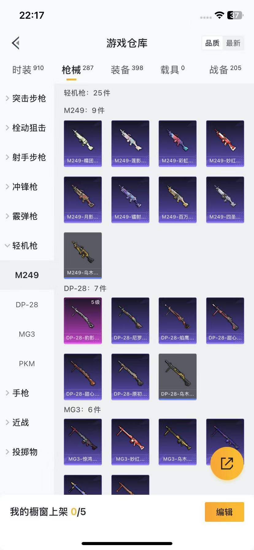 - PX_2081180-时装数: 91 枪械数: 27 战备数: 23 稀有枪皮: MK14-甜梦熊击【5级】