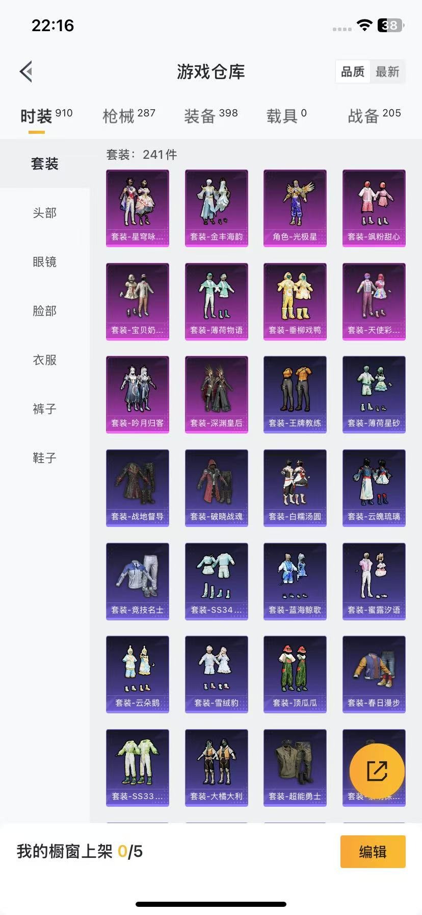 套装-鹰眼刺客,套装-迅捷狂鲨,套装-深海小丑鱼,套装-宝贝奶油派,套装-天使彩虹糖,套装-深渊皇后,套装-软萌银虎,套装-吟月归客,套装-薄荷物语,套装-垂柳戏鸭,套装-飒粉甜心,角色-光极星,套装-金丰海韵