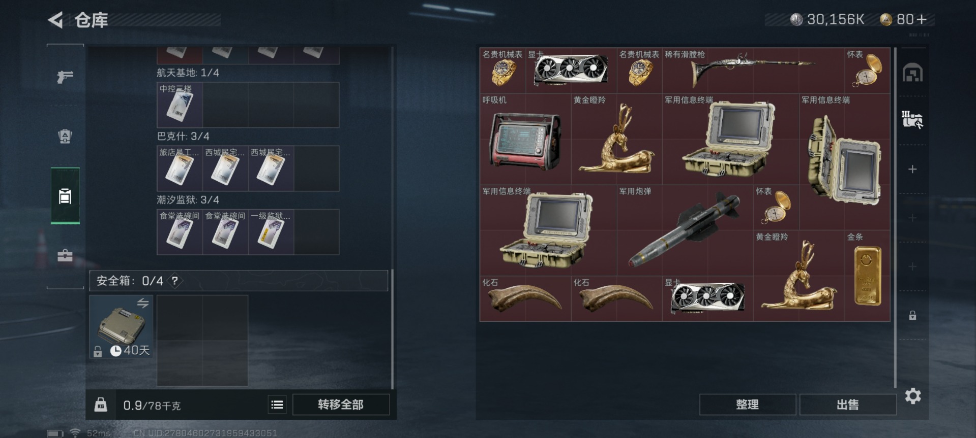 [11519058]总资产:81.4 2传说枪械 进阶安全箱(2×2)9.15号到期 可二次 可修改实名 烽火地带段位:黄金 全面战场段位:无段位 哈夫币:30.156 传说武器皮肤:复合弓-黑-天际线,CAR-15突击步枪-阿米娅 史诗武器皮肤:M700狙击步枪-蝮蛇,SV-98狙击步枪-林中猎手,M250通用机枪-囚徒