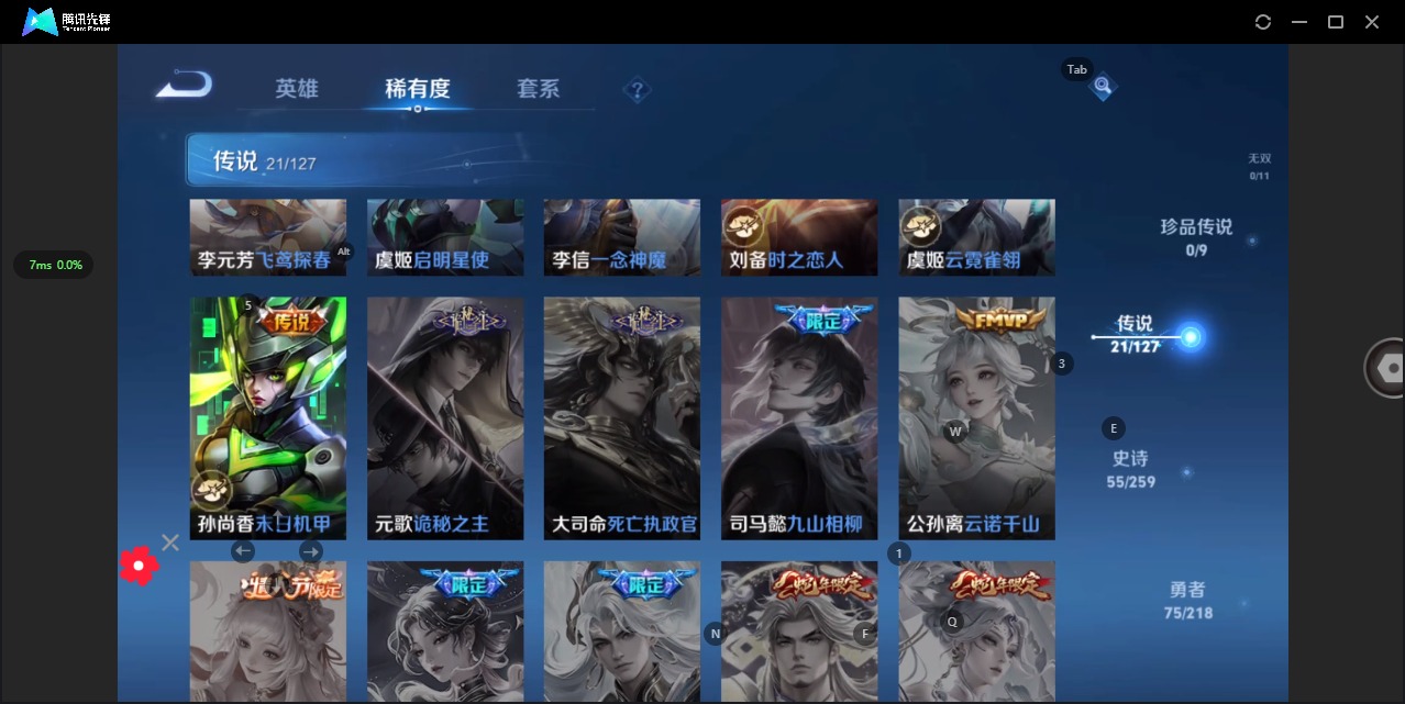 [11519192]V8 2典藏 21传说 123英雄 195皮肤 可修改实名 女号 优质装备:银白咏叹调(倪克斯侍卫),弑枪猎影(韩信典藏),一念神魔,云霓雀翎,末日机甲-孙尚香(绿蚂蚱),飞鸢探春,乞巧织情,时之恋人-刘备(电焊工),碎云,山海·炽霜斩(李信年限),山海·苍雷引(电光曜子),画中仙,浮生妄,电玩·雷克斯,鹤羽星尊,妄想实况,鹤归松栖(云缨),澜逐花归海 传说皮:幻光神枪 珍宝阁皮:万物之道 限定皮:鸣野蒿,山海·碧波行(瑶年限),无限倾心-项羽,影龙天霄,梁祝,御风骁将(吕布年限),山海·玄木吟(马可年限) 史诗皮:鸭鸭历险记-刘禅,龙之律动,石田雨龙,东方月初,琥珀纪元伽罗,特工魅影,电玩·兔顽号,匿光破解者,电玩·爆裂旋风,真我赫兹(镜),浮梦罗烟,真我赫兹(百里守约),鹤归松栖(赵怀真),匿光侦查者,江河有灵,百解令(蒙犽),偶像歌手,冰冠公主,末日机甲-吕布,猫狗日记-孙策,乱世虎臣,修罗,女仆咖啡,摇滚巨星,水果甜心,德古拉伯爵,暗隐猎兽者,鬼剑武藏,舞动绿茵,拒霜思,月团寄思,水晶猎龙者,曙光守护者,箭羽风息,金属风暴,圣诞狂欢,圣诞恋歌,鹰眼统帅,暗夜贵公子,赏金猎手,未来纪元-赵云
