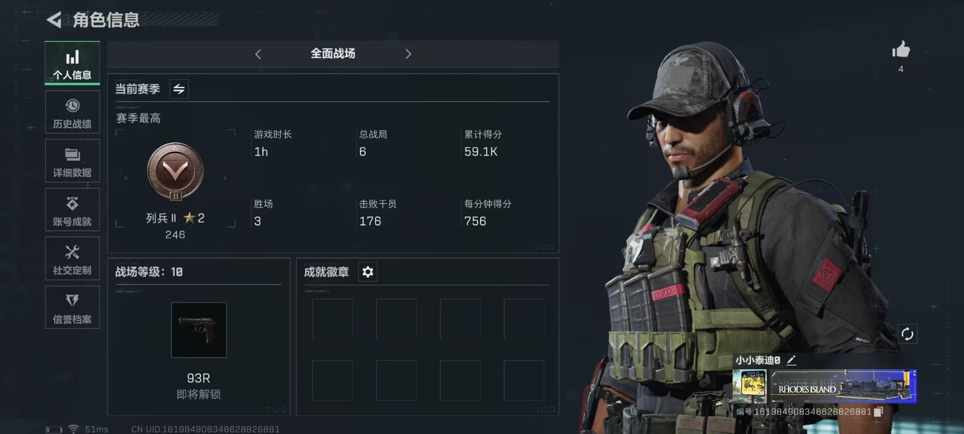 [11519133]总资产:174 6传说枪械 顶级安全箱(3×3)9.15号到期 可二次 可修改实名 优质装备:顶级安全箱(3x3) 烽火地带段位:钻石 全面战场段位:列兵 哈夫币:8.473 传说武器皮肤:M4A1突击步枪-阿米娅,CAR-15突击步枪-阿米娅,AK-12突击步枪-特斯拉线圈,SR-3M紧凑突击步枪-特斯拉线圈,UZI冲锋枪-特斯拉线圈,勇士冲锋枪-能天使-午夜邮差 史诗武器皮肤:M16A4突击步枪-竞赛选手,M250通用机枪-囚徒
