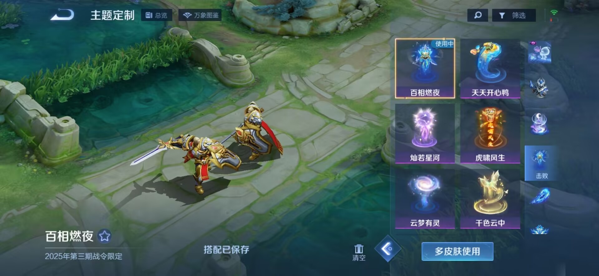 铠绛天战甲,李信一念神魔,达摩黄金狮子座,露娜霜月吟,镜炽阳神光,裴擒虎祥瑞亨通,曜云鹰飞将,曜李逍遥,澜逐花归海