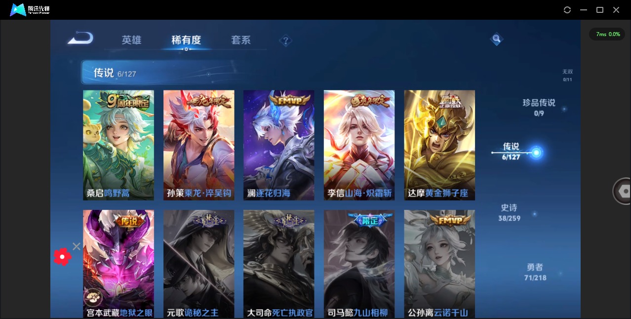 [11519445]V6 6传说 124英雄 146皮肤 可修改实名 女号 优质装备:黄金狮子座,地狱之眼,山海·炽霜斩(李信年限),澜逐花归海 传说皮:乘龙·淬吴钩(孙策年限) 珍宝阁皮:蔷薇恋人,玩趣恶龙 限定皮:鸣野蒿,五谷丰年,游园惊梦,岱宗(典韦年限) 史诗皮:超元猎域,琥珀纪元伽罗,紫霞仙子,苍穹之光,电玩小子(小书包),特工魅影,千年之狐,永昼,江河有灵,百解令(蒙犽),高渐离燃音魔法,乱世虎臣,水果甜心,星夜王子,功夫厨神,德古拉伯爵,暗隐猎兽者,鬼剑武藏,暗渊魔法,心灵战警,纤云弄巧,乘风破浪,水晶猎龙者,箭羽风息,金属风暴,圣诞狂欢,鹰眼统帅,魅力维加斯,无心,未来纪元-赵云