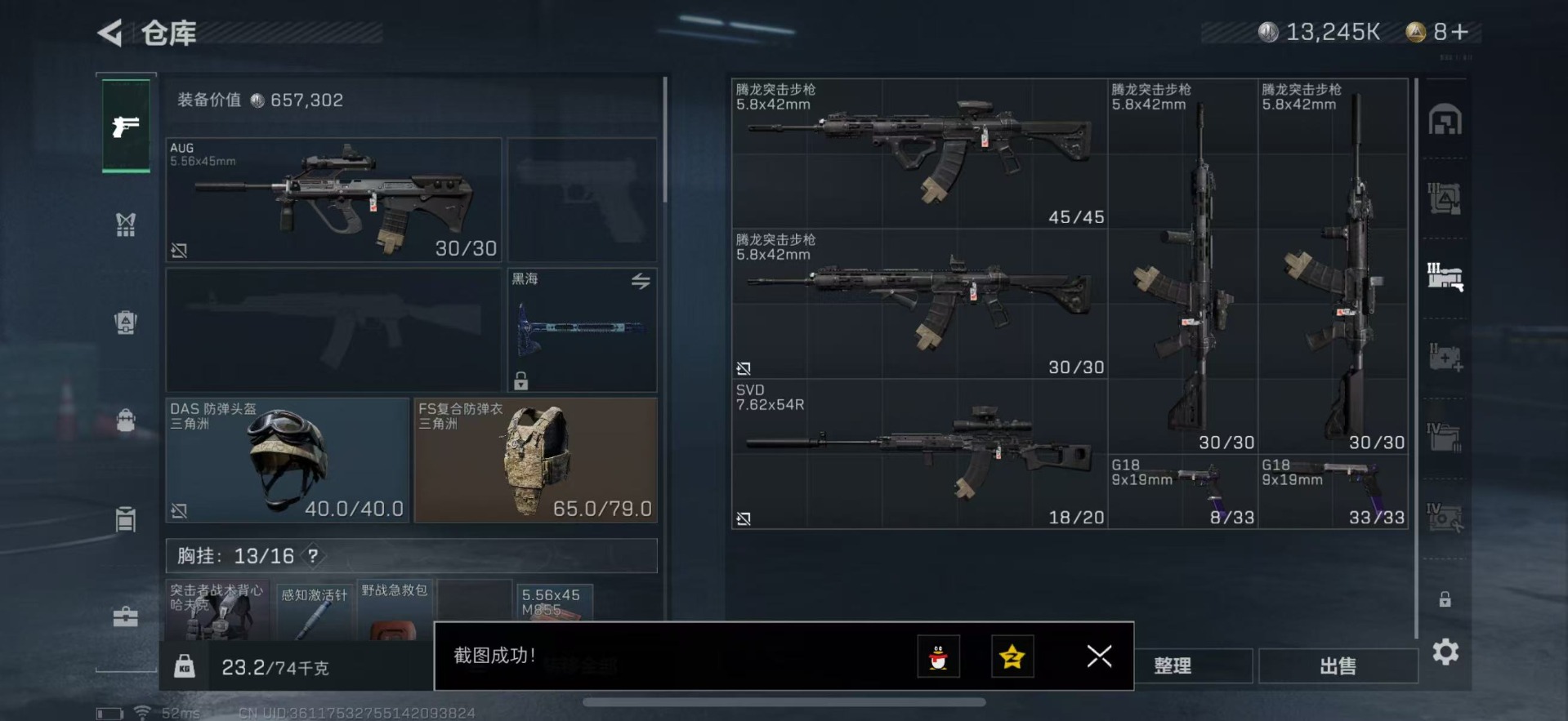 - [11600226]1传说角色 1炫金武器 33V武器 可二次 可修改实名 优质装备:M200-幻神,柯尔特-荣耀世冠白鲨2023,AK47-火麒麟,AK47-黑武士,Barrett-极光,AWM-裁决,加特林-炼狱,屠龙,龙啸,麒麟刺,擎天,斩神刀-雷暴,炽芒蝶刃,龙啸-堕天神,麒麟刺-堕天神 排位资格:有 V武器:AK47-黑鲨,AK47-B-战士,AK-47-猩红传说 王者武器:王者之力-觉醒版 炫金武器:炫金黑骑士