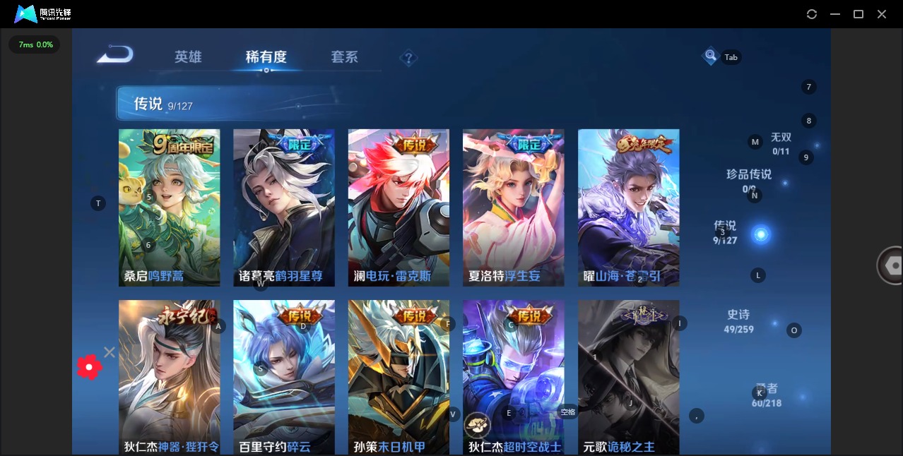 [11519668]V7 9传说 123英雄 144皮肤 可修改实名 优质装备:超时空战士-狄仁杰,末日机甲-孙策,碎云,神器·狴犴令,山海·苍雷引(电光曜子),浮生妄,电玩·雷克斯,鹤羽星尊 珍宝阁皮:蔷薇恋人 限定皮:鸣野蒿,五谷丰年,孙行者,山海·玄木吟(马可年限) 史诗皮:破空之剑,蒙犽顽岩魄,琥珀纪元伽罗,百相守梦-百里守约,遇见神鹿,特工魅影,千年之狐,百相守梦(刘备),电玩·爆裂旋风,江河有灵,百解令(蒙犽),高渐离燃音魔法,蒙恬荣光圣徽,冰冠公主,末日机甲-吕布,猫狗日记-孙策,节奏热浪,水果甜心,星夜王子,功夫厨神,暗隐猎兽者,幽灵船长,鬼剑武藏,缤纷独角兽,乘风破浪,逐浪之夏,水晶猎龙者,箭羽风息,金属风暴,圣诞恋歌,鹰眼统帅,赏金猎手,无心