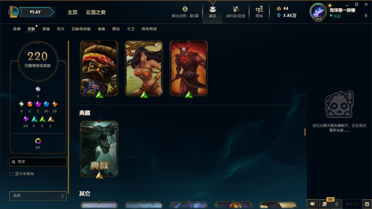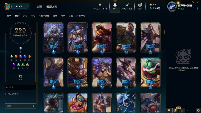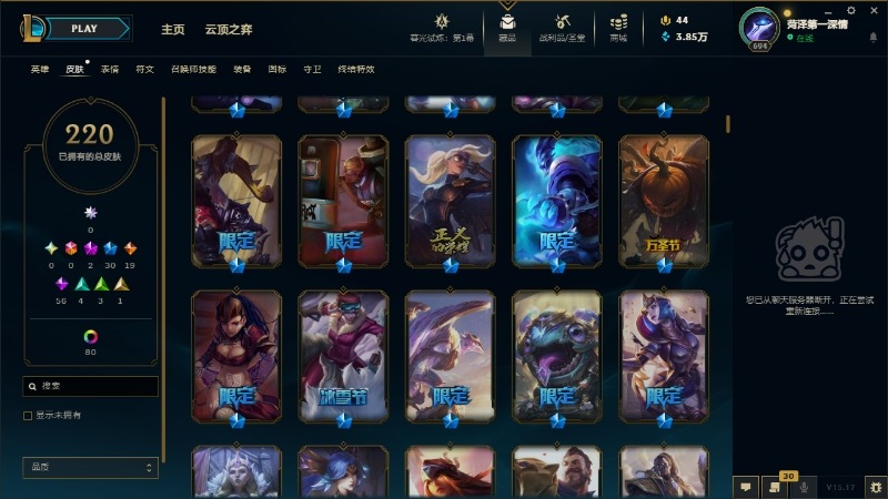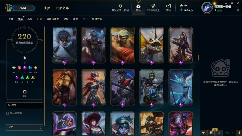 [11519877]2神话 2臻彩 29限定 19传说 220皮肤 100炫彩 170英雄 可二次 可修改实名 优质装备:无畏骑士 瑟庄妮 赤子初心,红莲之刃 锐雯 皮肤:腥红之月 派克,雷霆领主 奥恩,星之守护者 霞,暮星之羽 霞,永恒之森 巴德,SKT T1 卡莉丝塔,腥红之月 卡莉丝塔,糖果之王 艾翁,冠军典狱长 锤石,深渊恐惧 锤石,玉剑传说 寒潭夭夭,源代码 娜美,海皇姬 娜美,胜利之剑 亚托克斯,腥红之月 亚托克斯,霸天剑魔 亚托克斯,炼狱魔女 蔚,胜利枪神 卢锡安,西部魔影 卢锡安,源计划:雷 卢锡安,源计划:疯狂 金克丝,奥德赛 金克丝,星之守护者 金克丝,黑帮狂花 金克丝,银河魔装机神 千珏,源计划:升华 烬,猛虎 布隆,屠龙勇士 布隆,战地机甲 维克兹,黑夜使者 亚索,源计划:风 亚索,最后一只恐龙 纳尔,神龙尊者 玉境灵龙 卡莎,K/DA 卡莎,驯龙女巫 婕拉,血羽凤凰 奎因,无限烈焰 黛安娜,暗黑女武神 黛安娜,源代码 丽桑卓,血石妖后 丽桑卓,战斗学院 杰斯,全金属狂潮 杰斯,地下都市 梦魇 德莱厄斯,生化骑士 德莱厄斯,电玩战魂 赫卡里姆,幽魂骑士 赫卡里姆,德莱德莱德莱文,灵魂收割者 德莱文,驯龙女巫 璐璐,泳池派对 吉格斯,玉剑传说 无双,皇家守卫 菲奥娜,胜利女神 瑟庄妮,瑟庄妮·逐晓者,魄罗骑士 瑟庄妮,野兽女王 瑟庄妮,光明骑士 诺提勒斯,失落大陆 诺提勒斯,白色死神 韦鲁斯,坚韧不屈 沃利贝尔,雷霆领主 沃利贝尔,胜利枪神 格雷福斯