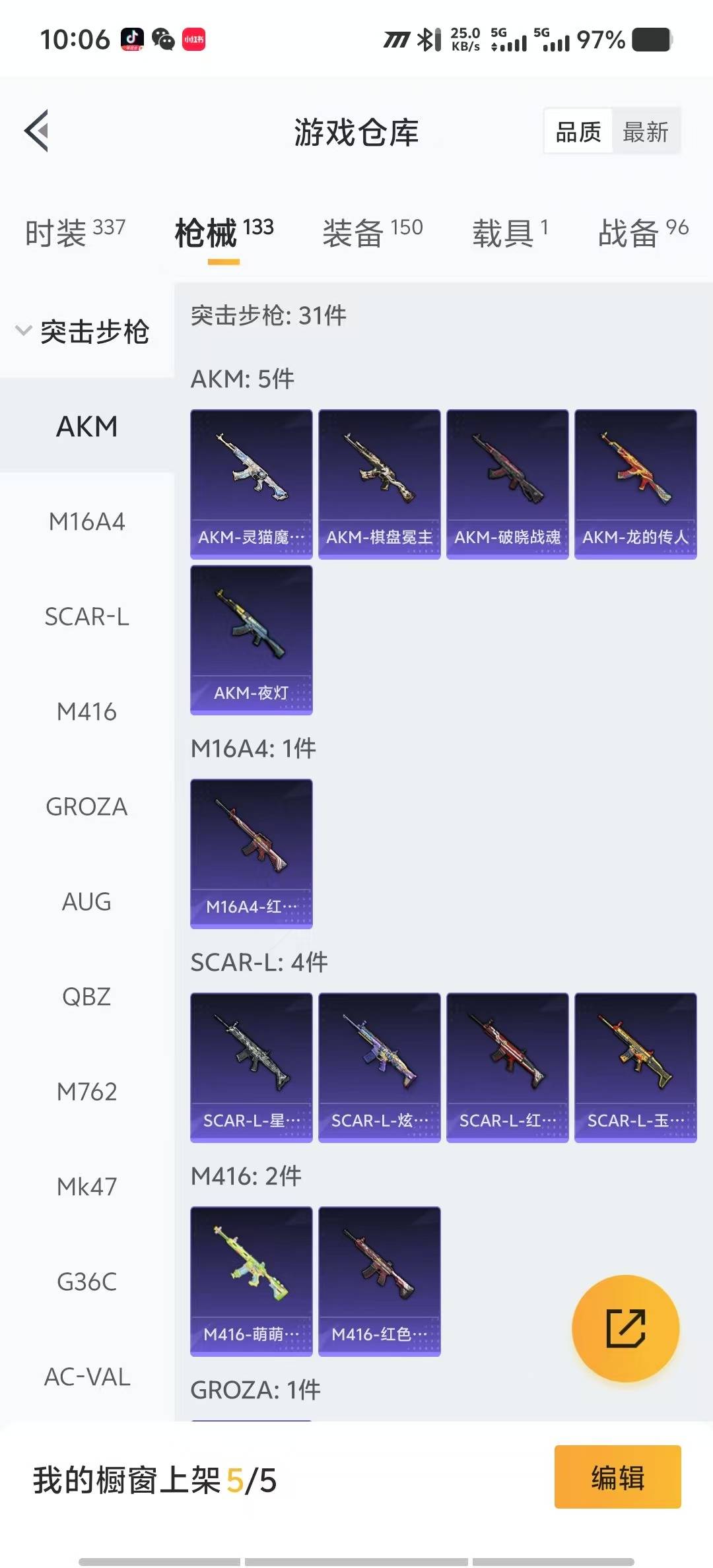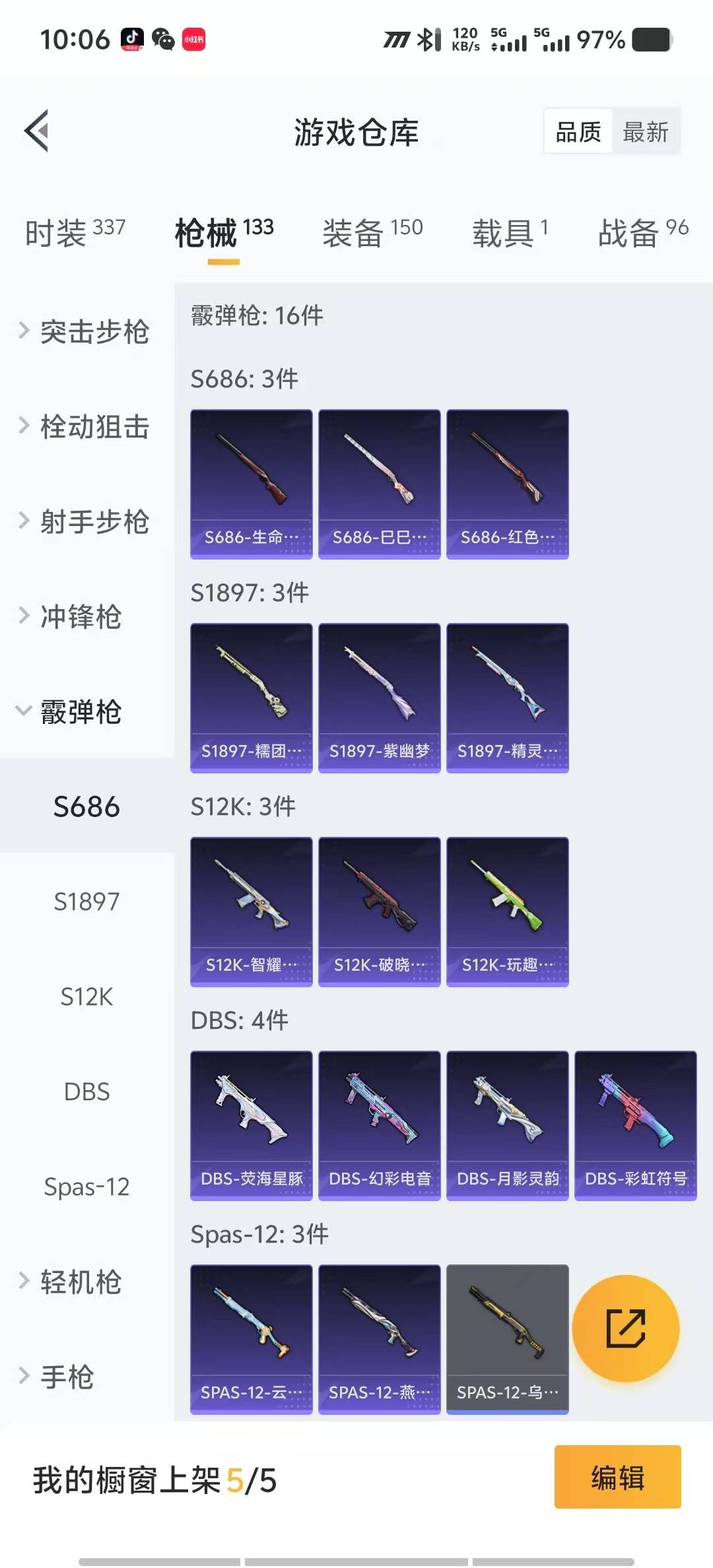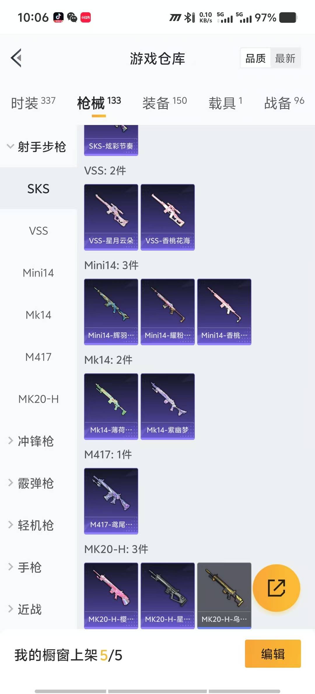 - PX_2111702- 包人脸 苹果手Q-6王牌印记-5粉装-4特效枪-1载具-32735热力值-82套装-89枪皮-0卓越印记-0传奇印记, 【5粉装】,霓裳武神,薄荷物语,纯珍童话,创世·救赎,脉冲星, 【4特效枪】,AKM-星际浪客-6级,SCAR-L-青春物语-7级,Kar98K-巳巳如意-3级,Mk14-精灵梦叶罗丽-4级, 【1稀有紫装】,龟仙人, 【1稀有载具】,路特斯ELETRE(
