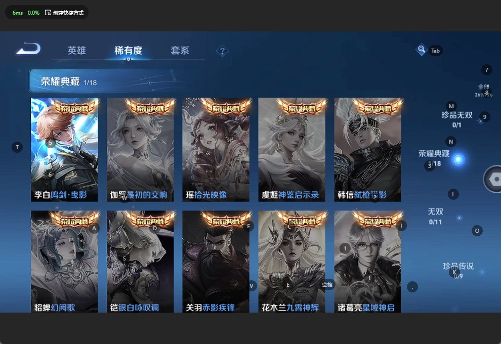 - [11687201]V4 113英雄 86皮肤 可修改实名 珍宝阁皮:蔷薇恋人 限定皮:至尊宝,梁祝,李小龙,大圣娶亲 史诗皮:白龙吟,水果甜心,纤云弄巧,鹰眼统帅,魅力维加斯