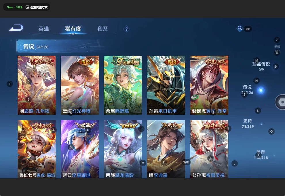 - [12030344]V7 2珍品传说 5传说 124英雄 163皮肤 可修改实名 优质装备:怪盗基德,器灵·落星盏,记忆之芯(机甲兔),霜月吟 珍宝阁皮:蔷薇恋人,玩趣恶龙 限定皮:愿照·九州拓(澜年限),鸣野蒿,时雨天司(水龙头),高山流水,梁祝,李小龙,引擎之心 史诗皮:茶境仙,百相守梦-百里守约,紫霞仙子,千年之狐,猫狗日记-大乔,时之恋人-孙尚香,乱世虎臣,节奏热浪,修罗,女仆咖啡,摇滚巨星,水果甜心,德古拉伯爵,幽灵船长,鬼剑武藏,舞动绿茵,拒霜思,乘风破浪,逐浪之夏,热力回旋,金属风暴,圣诞狂欢,鹰眼统帅,魅力维加斯,雪上飞焰,未来纪元-赵云