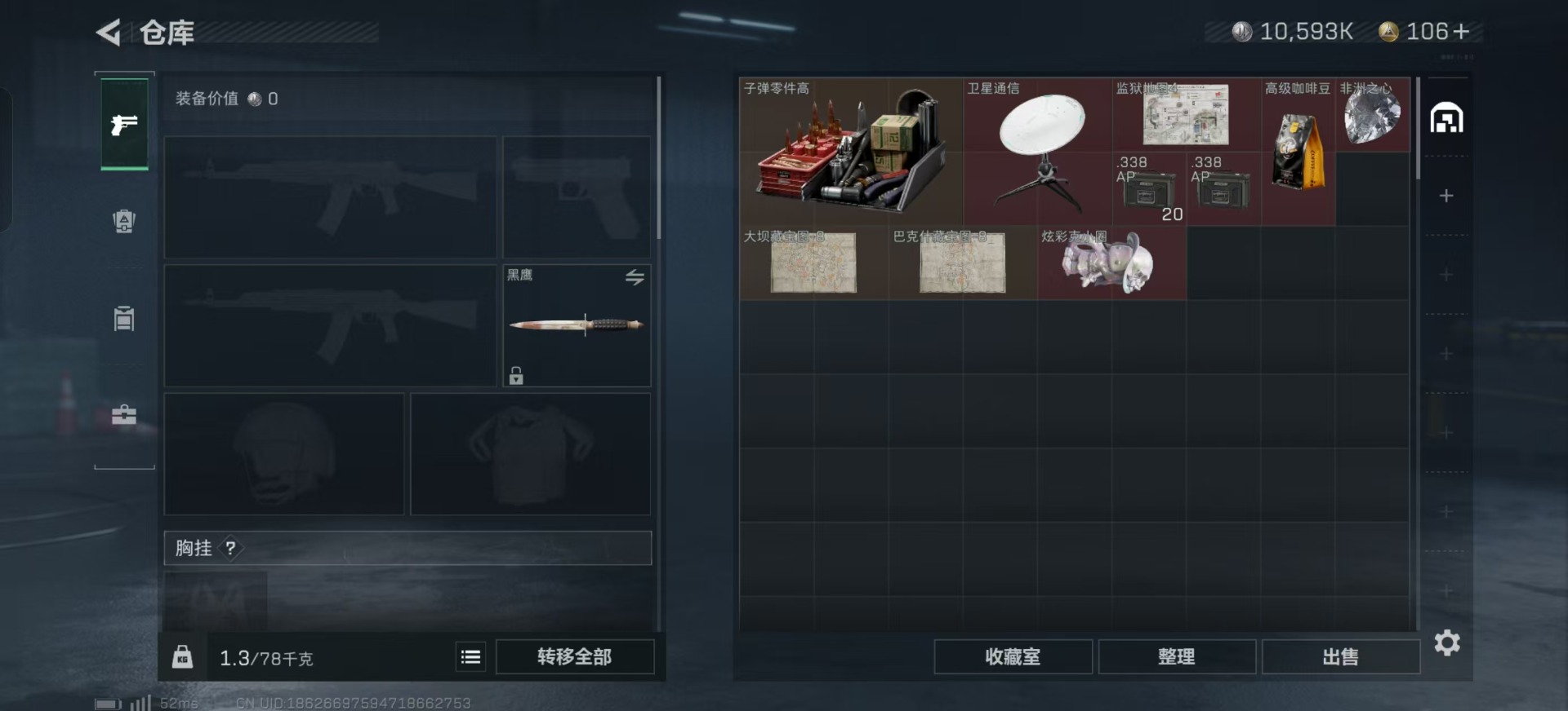 [11520110]总资产:58.3M 1干员外观 8传说枪械 哈夫币:10.593K 高级安全箱(2×3)9.15号到期 可二次 可修改实名 烽火地带段位:黑鹰 全面战场段位:列兵 传说武器皮肤:M4A1突击步枪-阿米娅,复合弓-黑-天际线,AK-12突击步枪-特斯拉线圈,SR-3M紧凑突击步枪-特斯拉线圈,UZI冲锋枪-特斯拉线圈,勇士冲锋枪-能天使-午夜邮差,725双管霰弹枪-送葬人-无题密令,M4A1突击步枪-蚀金玫瑰 史诗武器皮肤:M16A4突击步枪-竞赛选手,PKM通用机枪-荒野求生,勇士冲锋枪-深海恐惧,AKM突击步枪-林中猎手,SR-3M紧凑突击步枪-荒野求生,M1014霰弹枪-林中猎手,SV-98狙击步枪-林中猎手,PTR-32突击步枪-英雄,SVD狙击步枪-荒野求生,M250通用机枪-囚徒,SCAR-H战斗步枪-囚徒,腾龙突击步枪-无垢,MP7冲锋枪-无垢,PSG-1射手步枪-无垢,Vector冲锋枪-阿萨拉文明 干员外观:红狼-蚀金玫瑰