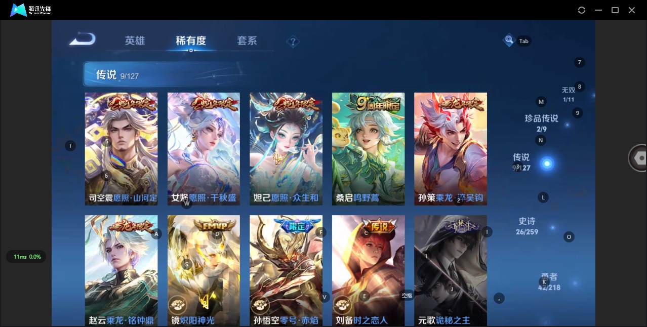 - [11349574]V7 1典藏 3传说 125英雄 217皮肤 典藏英雄武则天 可修改实名 优质装备:全息碎影(猴子典藏),地狱火,海洋之心,地狱之眼 珍宝阁皮:蔷薇恋人,玩趣恶龙 限定皮:至尊宝,飞衡(韩信年限),瑞麟志(木兰年限),遇见飞天,高山流水,梁祝,李小龙,朱雀志(守约年限),如梦令-后羿,猪悟能,一生所爱,大圣娶亲 史诗皮:海诺心动手记,决胜骁骑,紫霞仙子,苍穹之光,电玩小子(小书包),白龙吟,黄金分割率,千年之狐,永昼,百解令(蒙犽),无限星赏官,冰冠公主,偶像歌手,末日机甲-吕布,节奏热浪,修罗,水果甜心,天才门将,星夜王子,心灵骇客,德古拉伯爵,暗隐猎兽者,幽灵船长,鬼剑武藏,心灵战警,舞动绿茵,拒霜思,缤纷独角兽,乘风破浪,水晶猎龙者,曙光守护者,金属风暴,原初追逐者,圣诞狂欢,圣诞恋歌,鹰眼统帅,魅力维加斯,黎明之约,未来纪元-赵云
