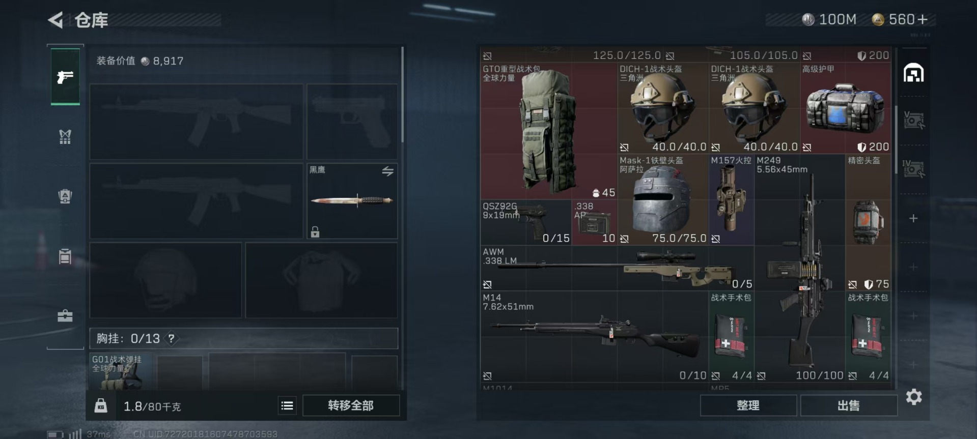 - [11251588]总资产:384 9传说枪械 高级安全箱(9.17到期) 可二次 可修改实名 烽火地带段位:铂金 全面战场段位:列兵 哈夫币:182 传说武器皮肤:QJB201轻机枪-风林火山,AK-12突击步枪-夜鹰,M4A1突击步枪-阿米娅,复合弓-黑-天际线,AWM狙击步枪-捞点薯条,腾龙突击步枪-捞点薯条,93R-捞点薯条,勇士冲锋枪-能天使-午夜邮差,725双管霰弹枪-送葬人-无题密令 史诗武器皮肤:AUG突击步枪-蝮蛇,M700狙击步枪-蝮蛇,SR-25射手步枪-战场英杰,PKM通用机枪-荒野求生,AS Val突击步枪-尖端治疗,M700狙击步枪-守夜人,Ash-12战斗步枪-守夜人,MP5冲锋枪-深海恐惧,勇士冲锋枪-深海恐惧,SG552突击步枪-深海恐惧,AKM突击步枪-林中猎手,SVD狙击步枪-暗夜猎手,M16A4突击步枪-竞赛选手,SVD狙击步枪-荒野求生,M1014霰弹枪-林中猎手,SV-98狙击步枪-林中猎手,PTR-32突击步枪-英雄,PSG-1射手步枪-无垢,M250通用机枪-囚徒,腾龙突击步枪-无垢,MP7冲锋枪-无垢,QBZ95-1突击步枪-曙光,沙漠之鹰-曙光,SVD狙击步枪-阿萨拉工艺,S12K霰弹枪-曙光