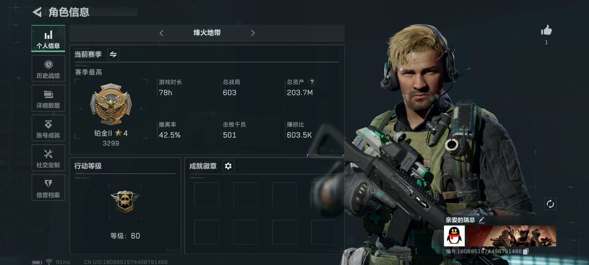 [11520273]总资产:203.7M 6传说枪械 哈夫币:167K 可二次 可修改实名 烽火地带段位:铂金 全面战场段位:无段位 传说武器皮肤:CAR-15突击步枪-阿米娅,复合弓-黑-天际线,Vector冲锋枪-狩猎时刻,SR-3M紧凑突击步枪-特斯拉线圈,UZI冲锋枪-特斯拉线圈,Vector冲锋枪-能天使-午夜邮差