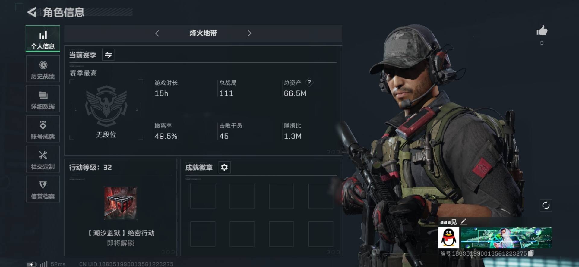 [11520416]总资产:66.5M 5传说枪械 哈夫币:60.682K 可二次 可修改实名 烽火地带段位:无段位 全面战场段位:无段位 传说武器皮肤:M4A1突击步枪-阿米娅,AWM狙击步枪-捞点薯条,腾龙突击步枪-捞点薯条,93R-捞点薯条,勇士冲锋枪-能天使-午夜邮差 史诗武器皮肤:SV-98狙击步枪-林中猎手,M250通用机枪-囚徒,Vector冲锋枪-阿萨拉文明
